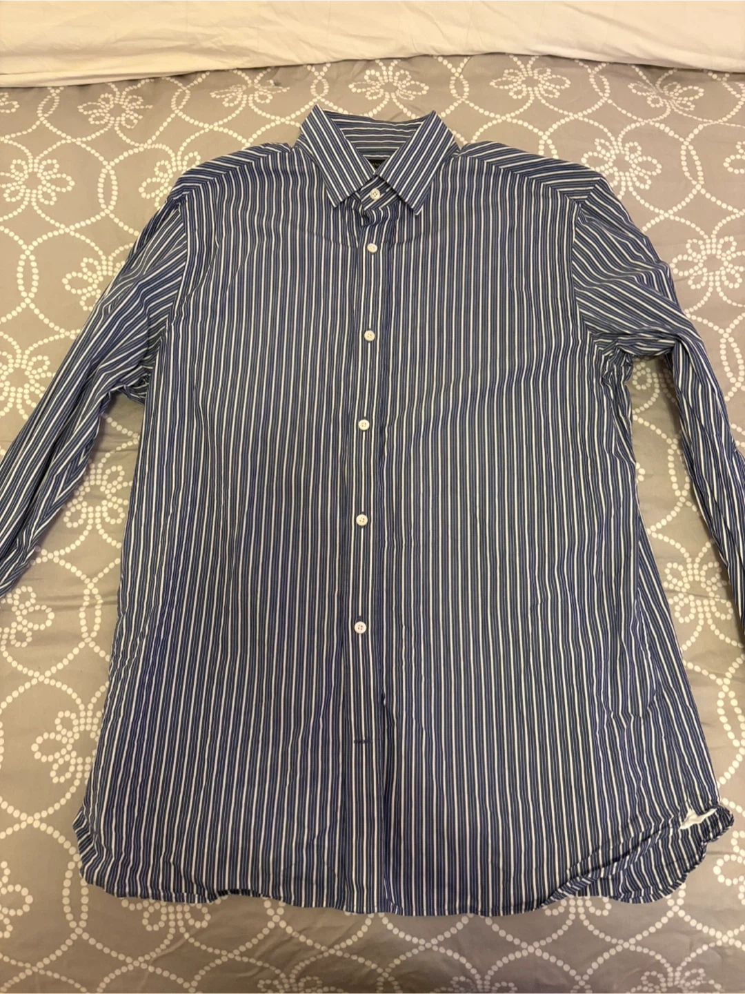 Banana Republic slim fit shirt in size large. It features a blue and white striped pattern and is made from 100% cotton