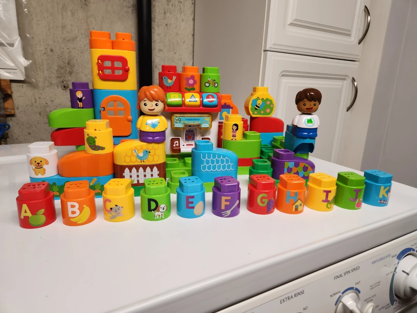 I'm selling a LeapFrog Fridge Phonics set along with LeapFrog alphabet blocks. These toys are great for introducing little ones to letters and early learning concepts! They are in good condition and ready for a new home.