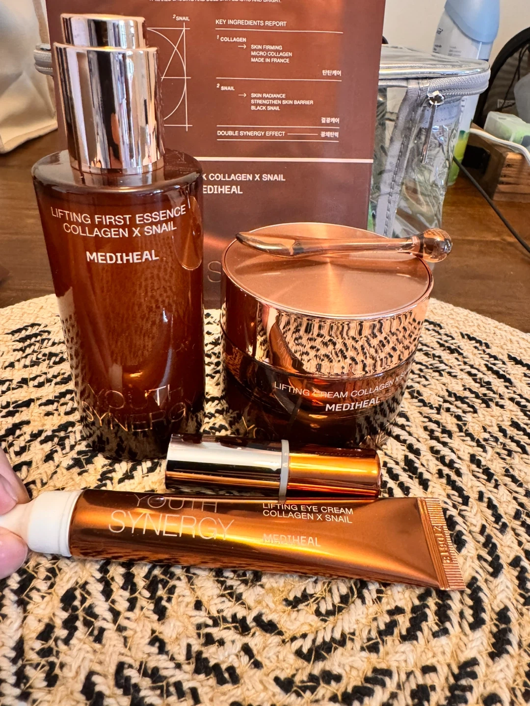 This set includes Mediheal Lifting First Essence, Lifting Cream, and Lifting Eye Cream. All products are formulated with collagen and snail extract. Great for improving skin firmness and radiance!