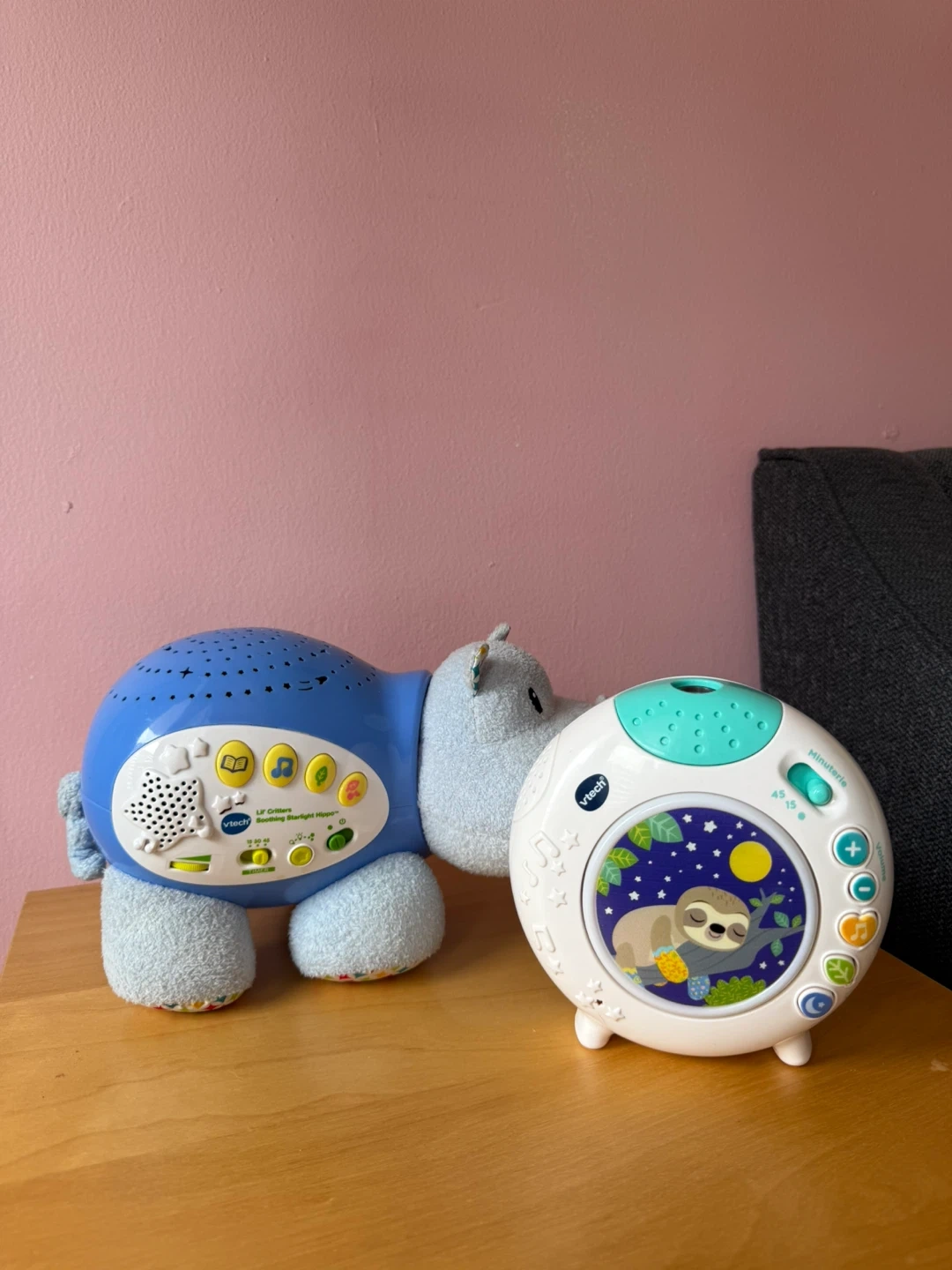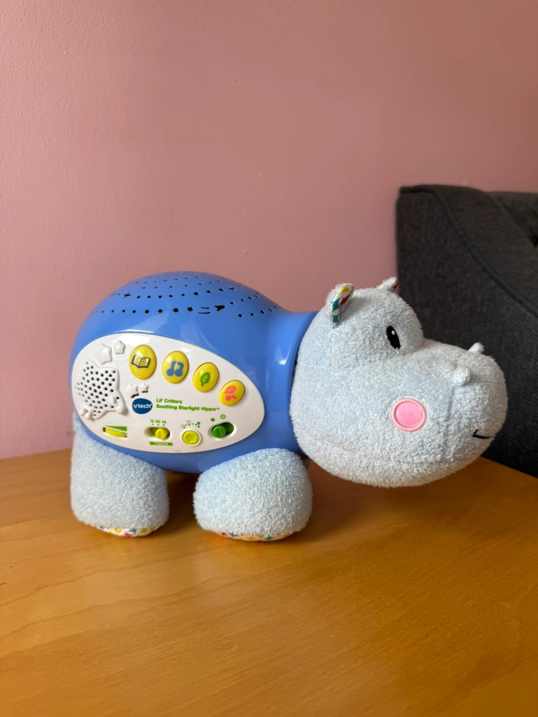 This VTech Lil Critters Soothing Starlight Hippo helps calm little ones. It projects stars onto the ceiling and plays soothing sounds. Features a 10, 20, or 30-minute timer.