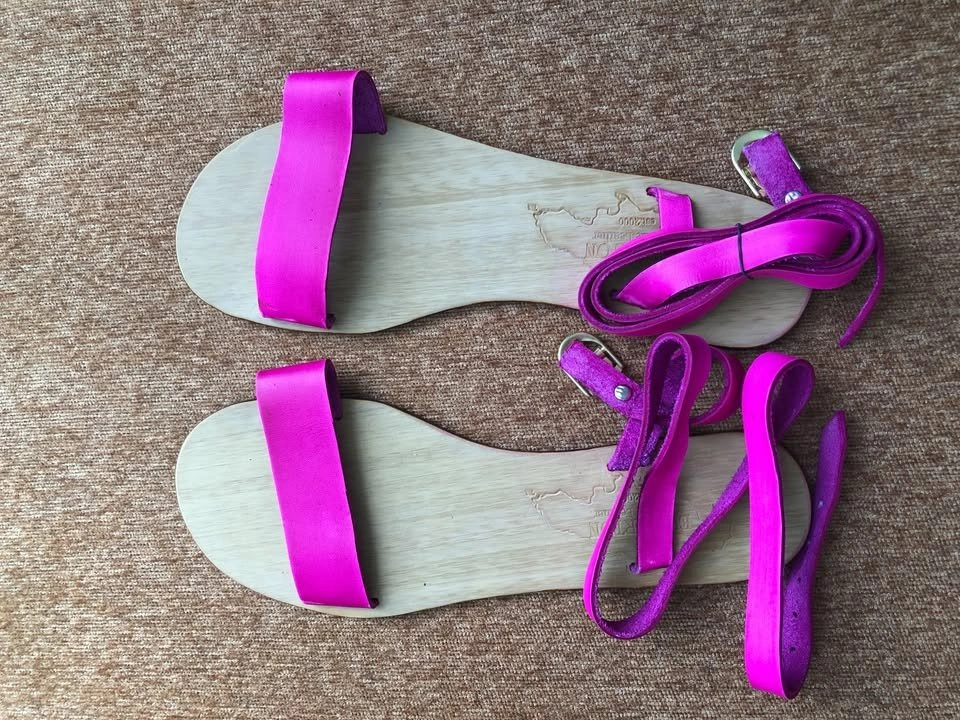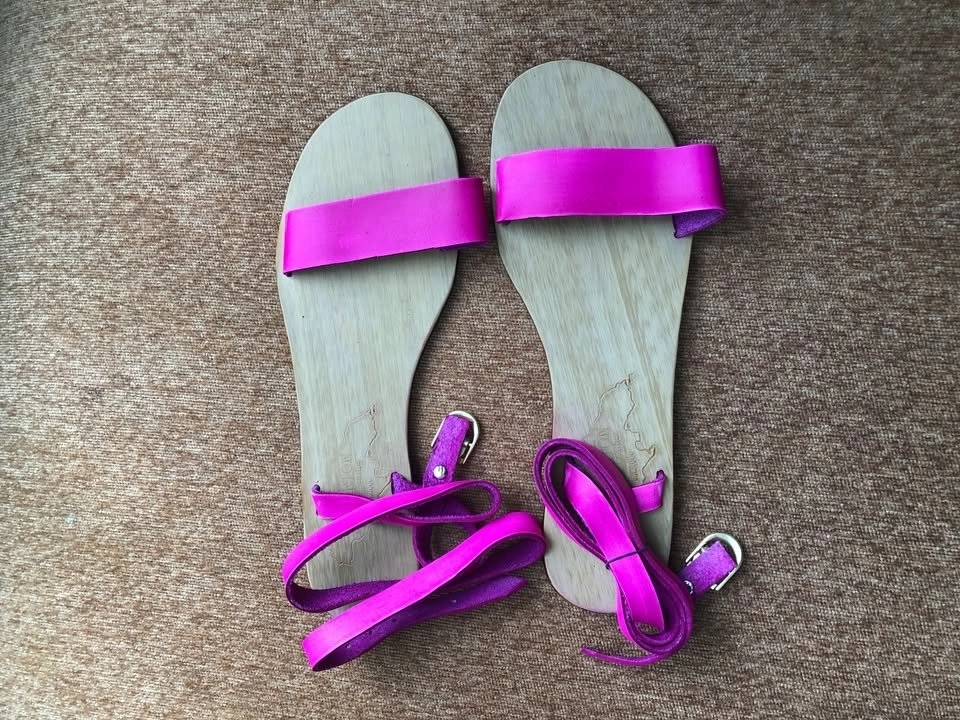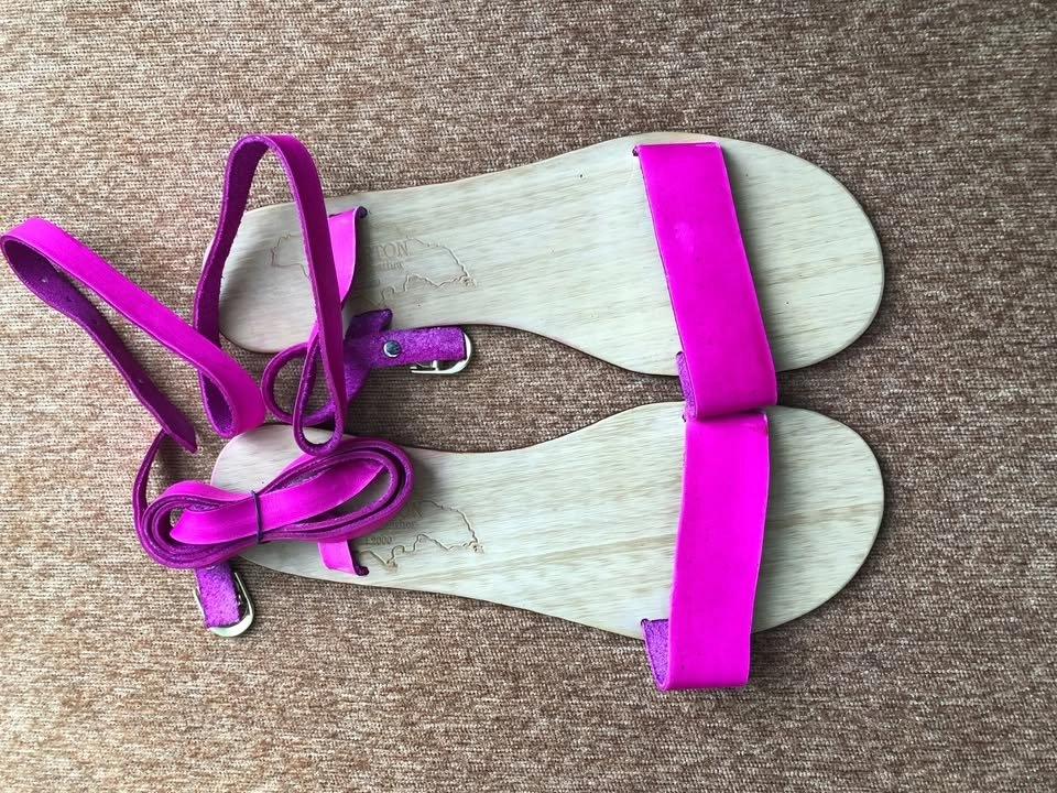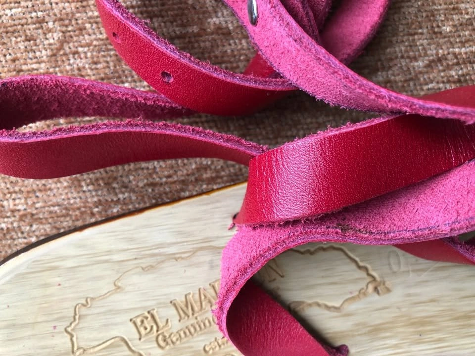 Never go unnoticed by your girl friends with the beautiful fuschia leather skinny straps. This pair will surely be a great conversation piece!