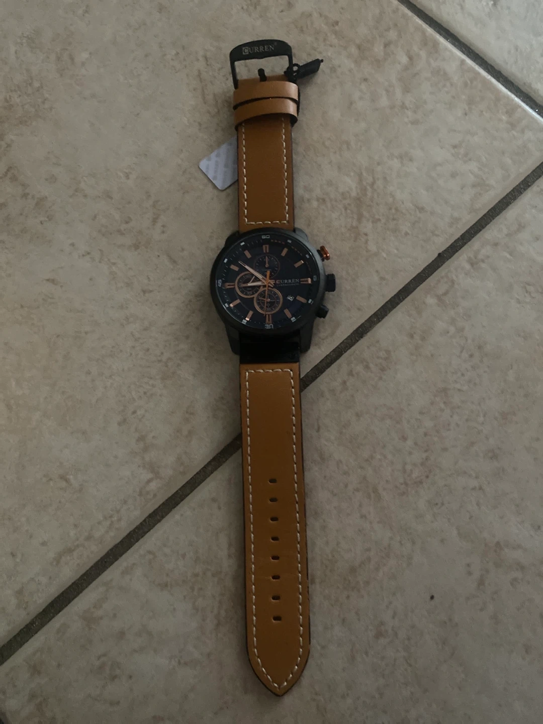 Selling a Curren men's quartz watch. It features a stylish brown leather strap and a sleek design. Great for everyday wear!