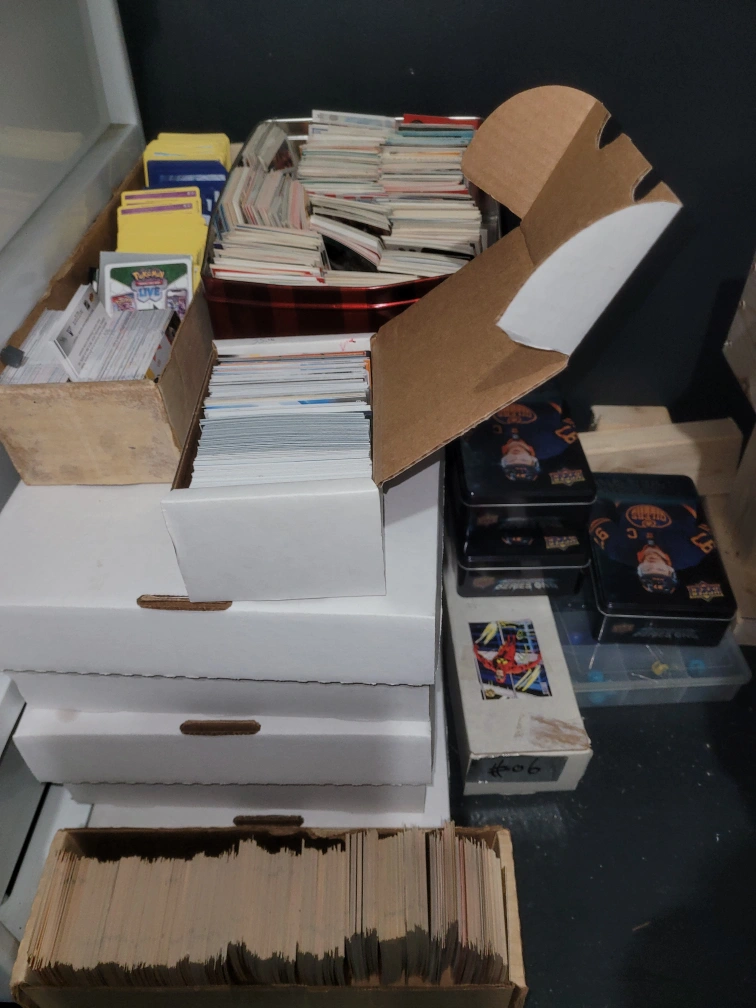 Hockey,baseball,basketball,football,golf and about 500 Pokémon cards in this collection.Cards from the 70's to this year.Hundreds apon hundreds of rookie cards.Autographed and numbered cards,inserts ,error cards etc etc.Selling as a lot.No individuals!All these cards could make a reseller alot of money.Contact me if you are a serious buyer for more info and pictures.Open to any reasonable offer.