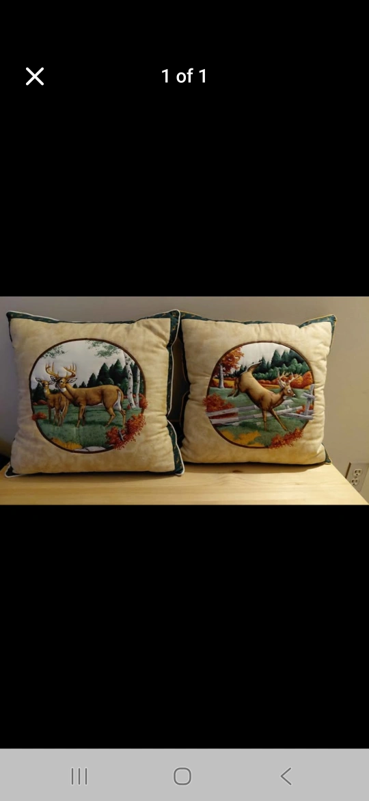 Set of two throw pillows featuring a deer motif. These pillows would be a cozy addition to any living space or bedroom!