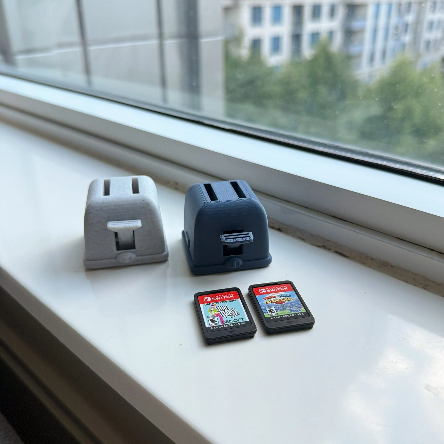 15Cute 3D printed toaster-style holder for Nintendo Switch games 🎮 Each holds 2 game cards. *Price is for one holder only (Grey and blue available now.)