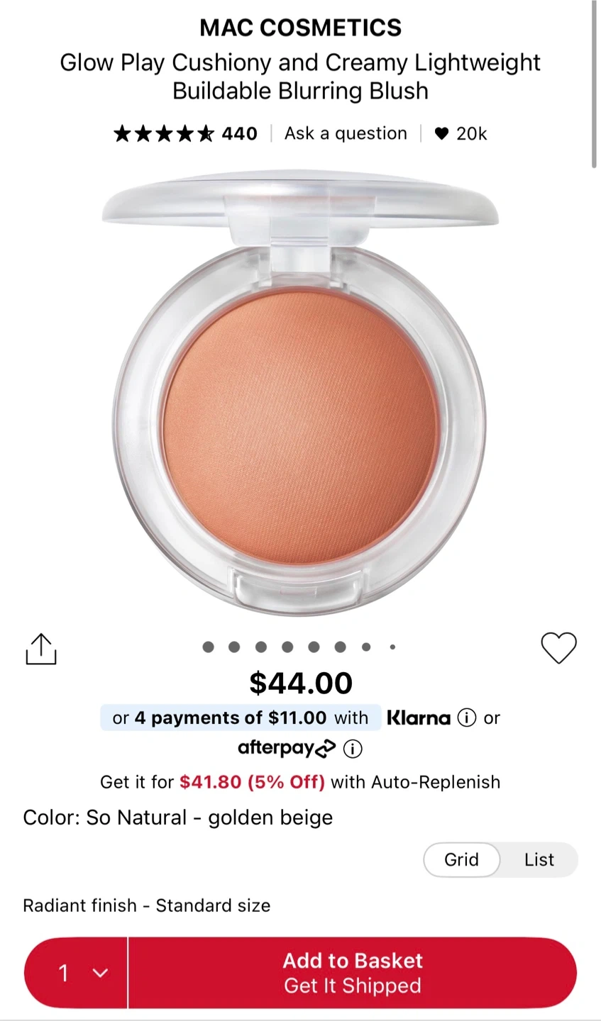 Selling Mac Cosmetics Glow Play Cushiony Blush - So Natural