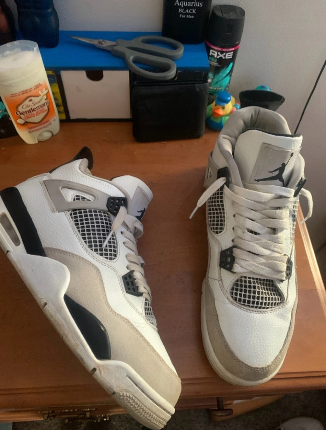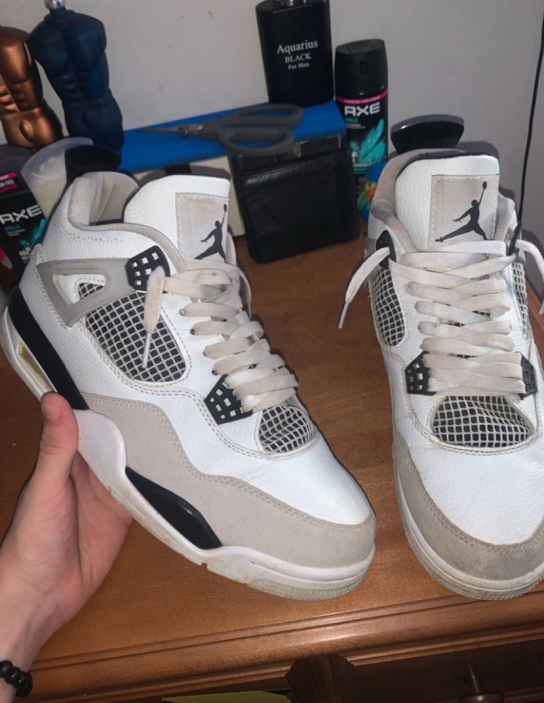 Air Jordan 4 Retro 'White/Cement'-50$in size 10. Good condition no box reps Jordan’s 12-45$ beat size 11 no box real
