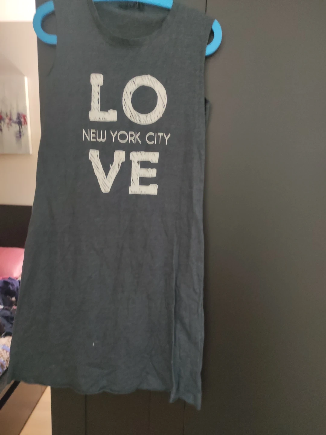 This sleeveless dress features a bold "LOVE NEW YORK CITY" graphic print. It's made from a soft fabric, perfect for warm weather. This casual dress is great for everyday wear.