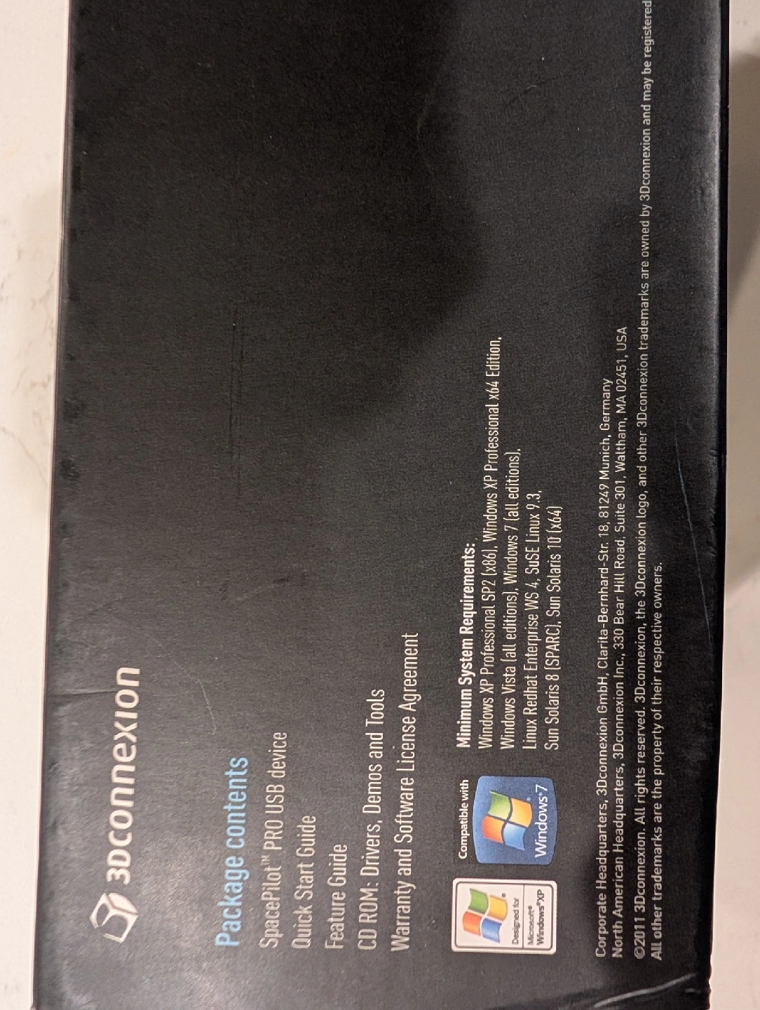 Selling a 3Dconnexion SpacePilot Pro, the ultimate professional 3D mouse! It's in like-new condition and comes with the original box. Package contents include: - SpacePilot Pro USB device - Quick Start Guide - Feature Guide - CD ROM: Drivers, Demos and tools - Warranty and Software License Agreement Minimum system requirements: - Compatible with Windows 7