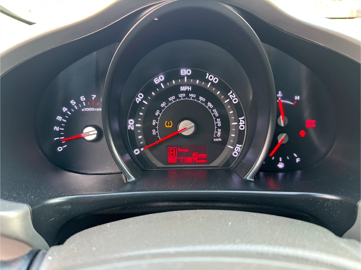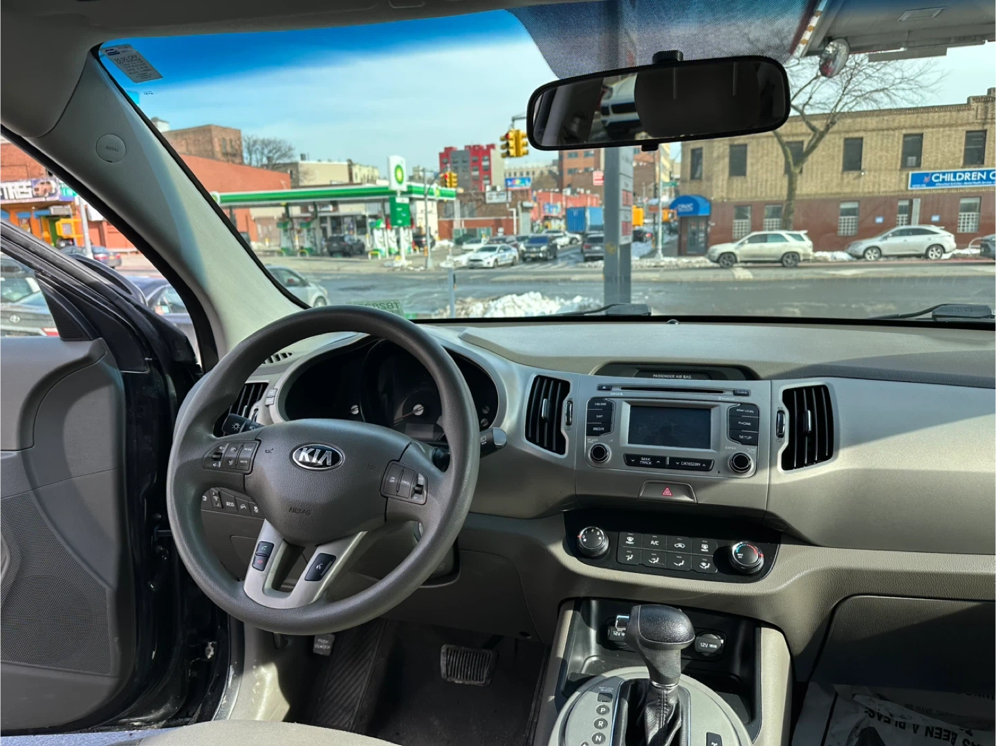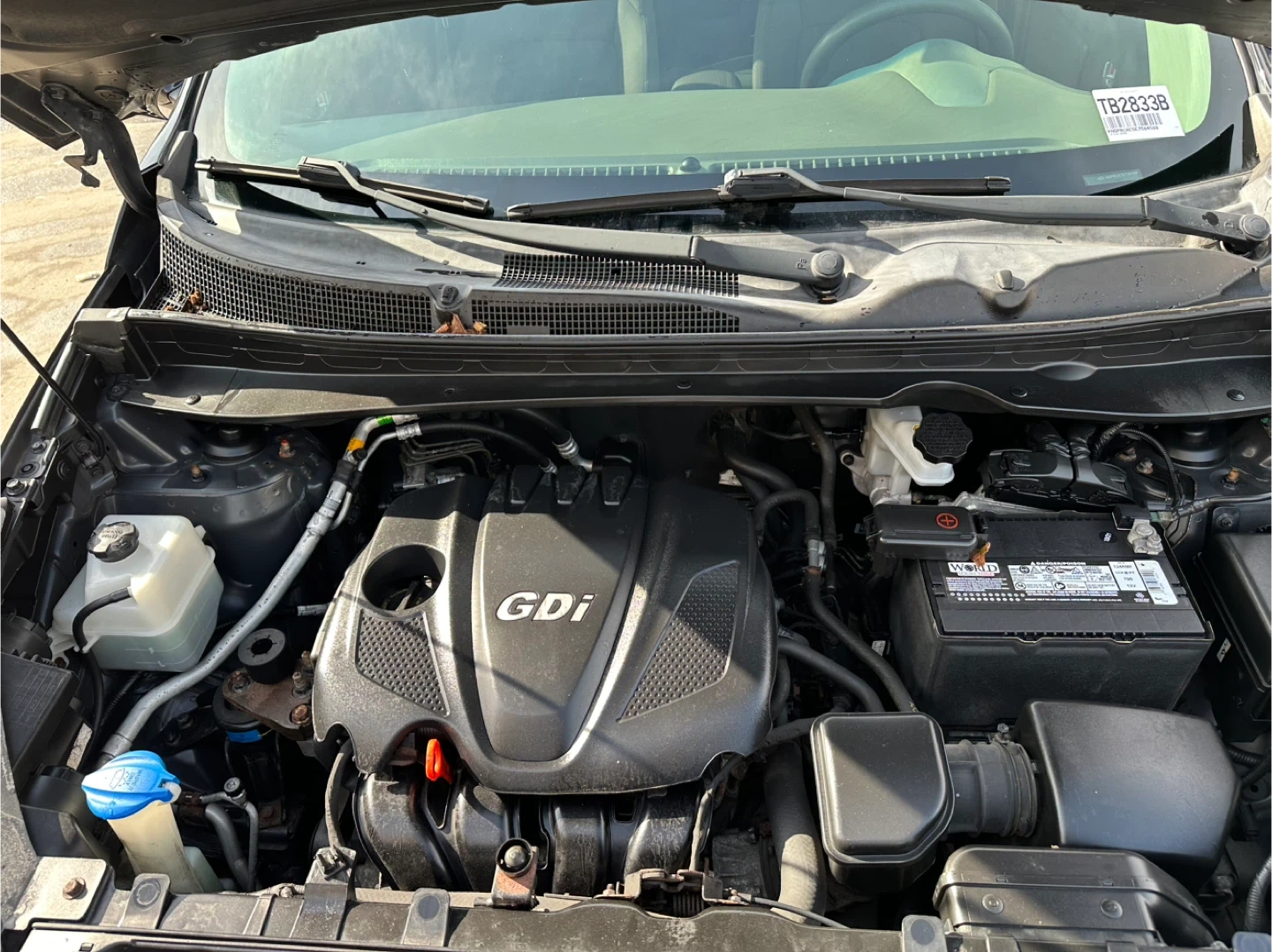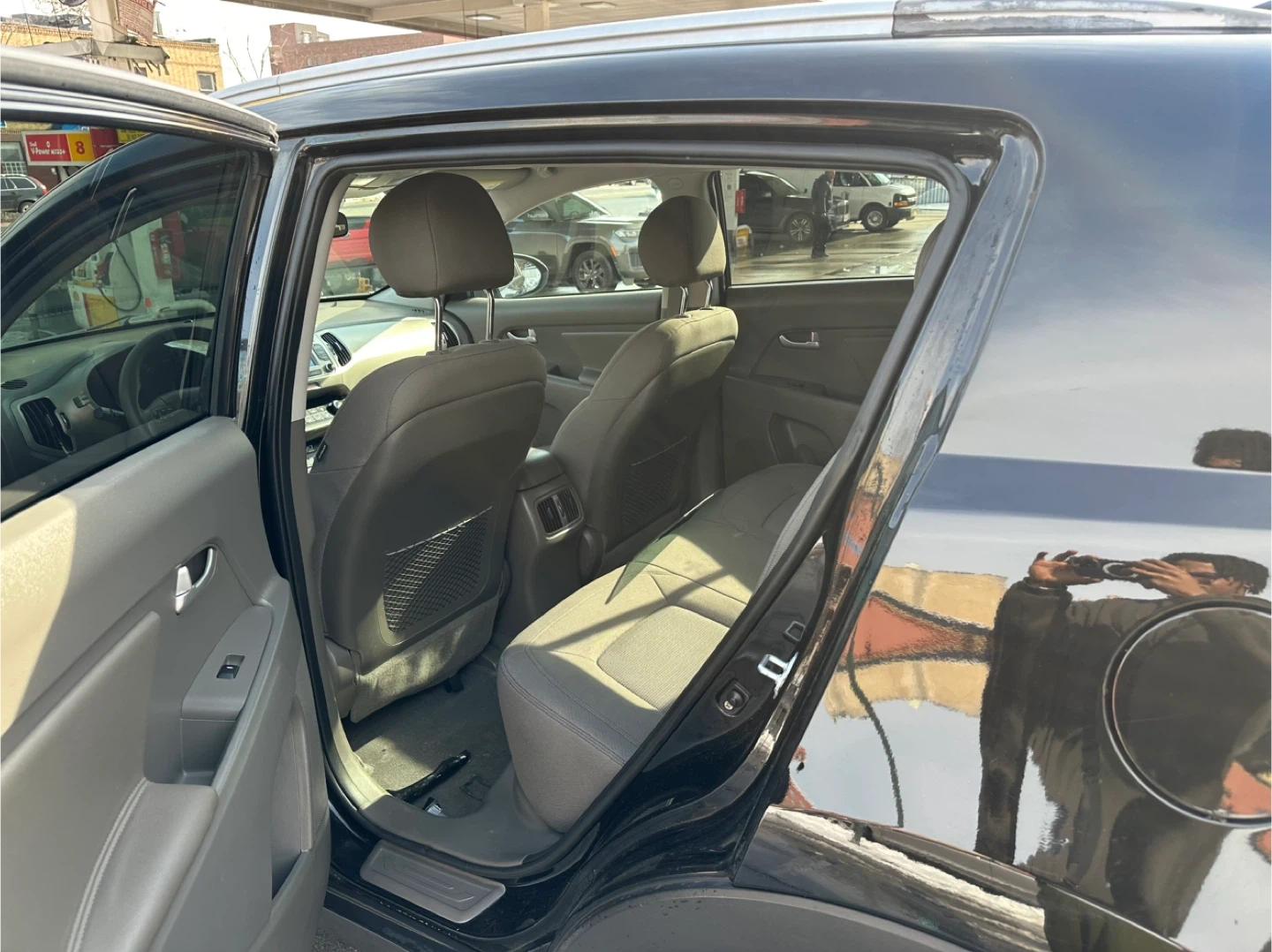 Black 2014 Kia Sportage EX with gray cloth interior. It's powered by a 2.4L GDI engine. Odometer shows 115,00 miles. Clean interior and engine bay.