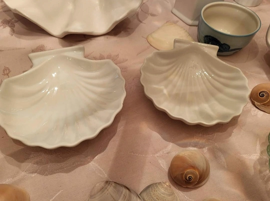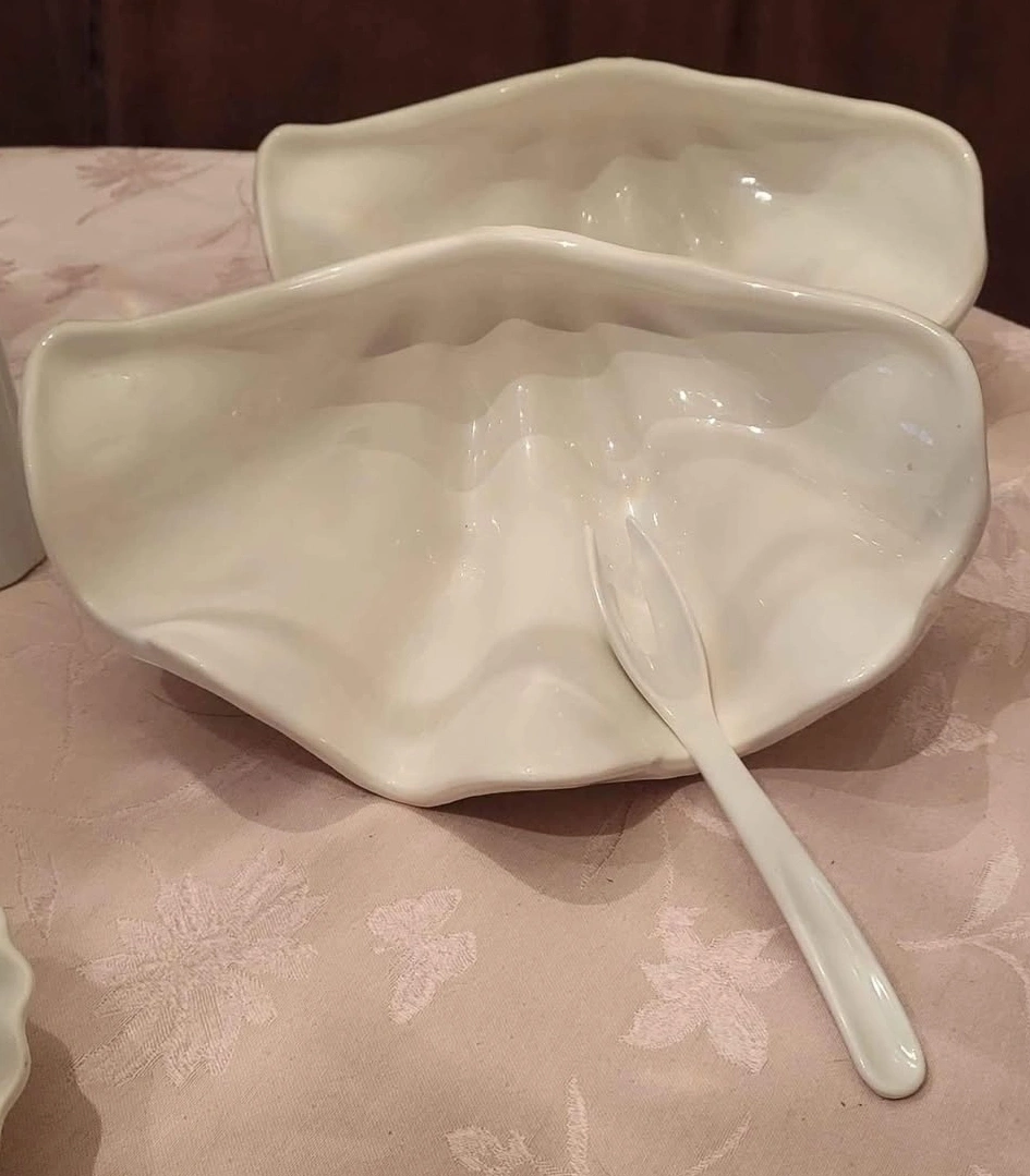 Set of 2 White Ceramic Shell Bowls~Asking $5.00