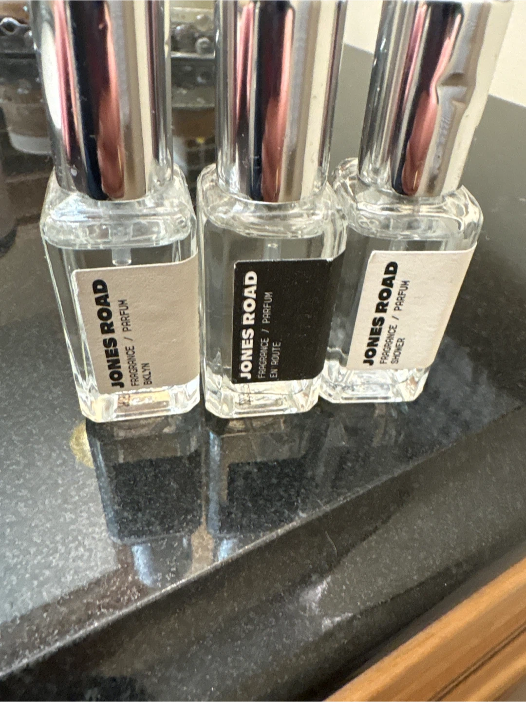 Three mini fragrances from Jones Road in convenient spray bottles. Includes BKLYN, EN ROUTE, and SHOWER scents. It's perfect for trying out new perfumes or for travel!