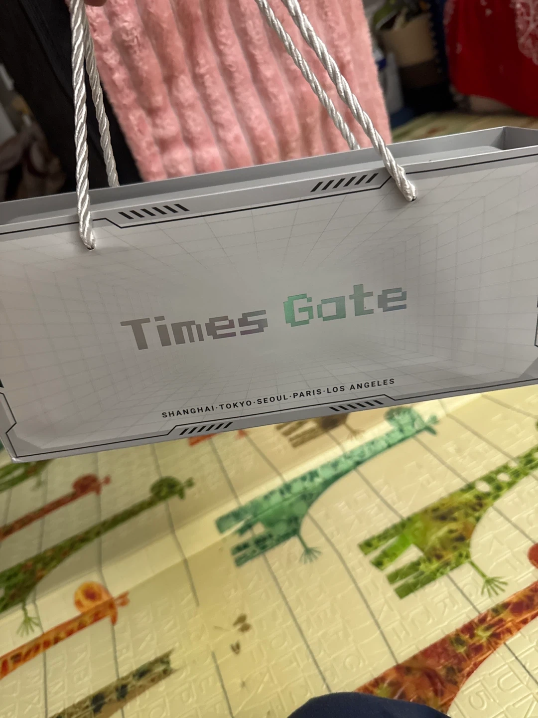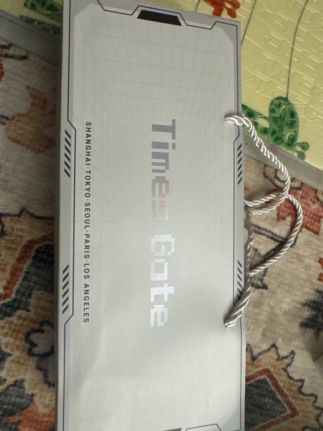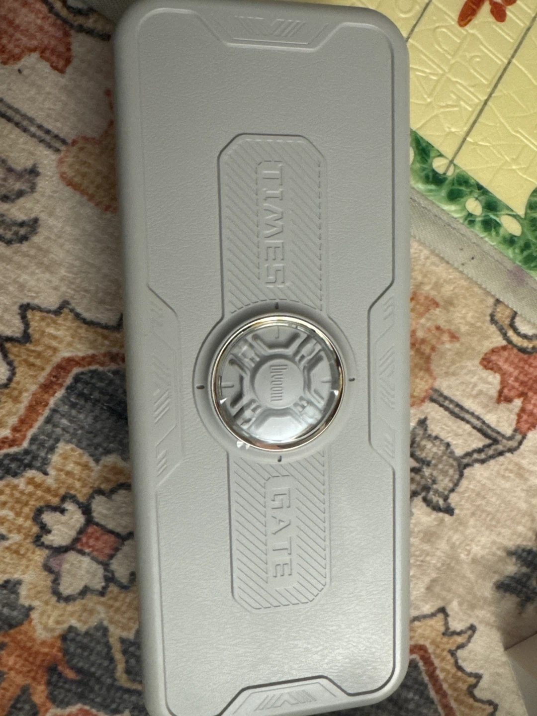 This is the Times Gate Cyberpunk Decor item. It's silver and designed for gaming rooms or offices. It measures 11 x 4.5 x 2 inches.