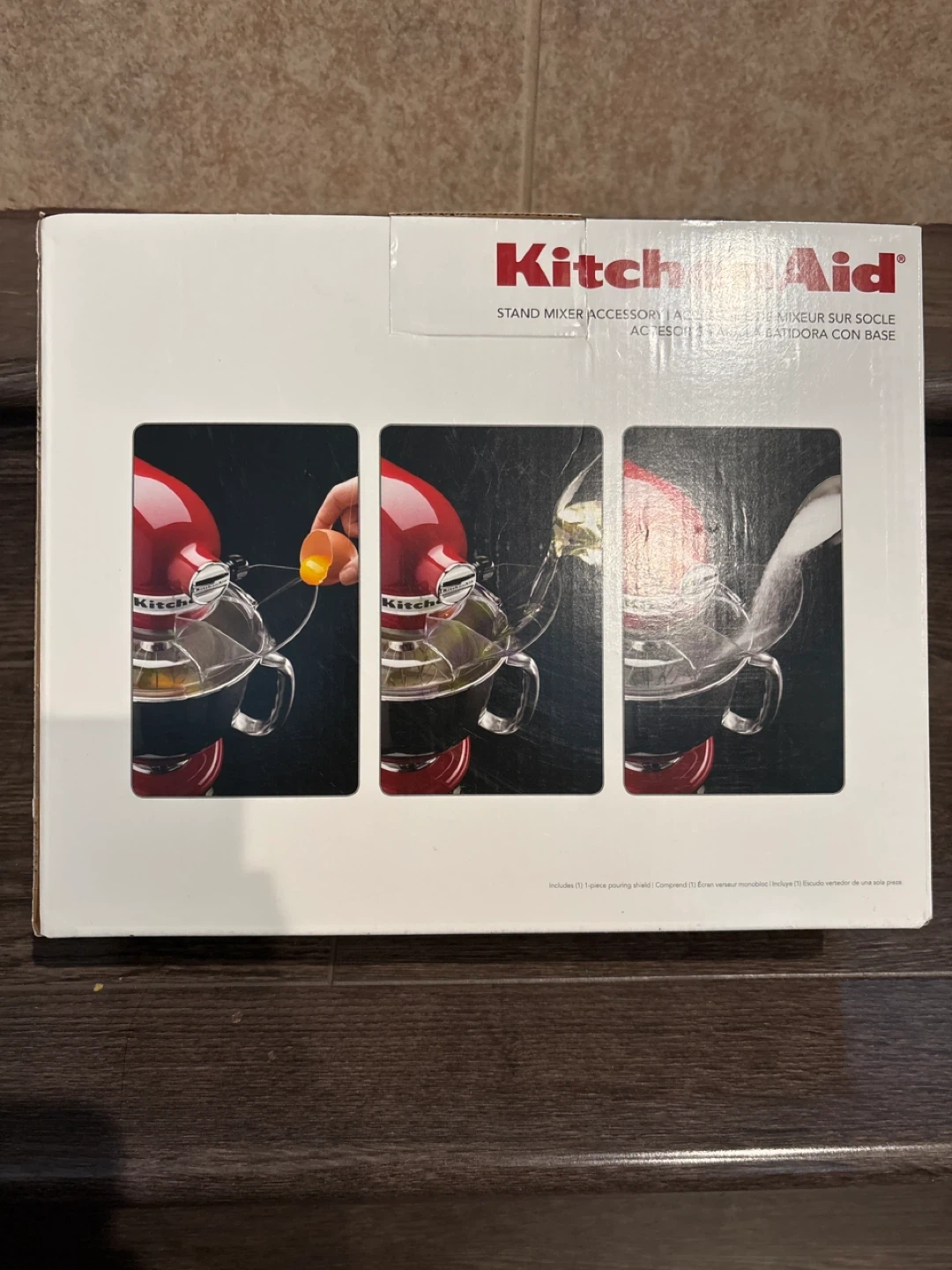 Selling a brand new KitchenAid pouring shield! This accessory fits 4.5 qt (4.3 L) and 5 qt (4.7 L) tilt-head bowl-lift models. It reduces splashing when adding ingredients, making your baking experience cleaner and more enjoyable. Includes one pouring shield.