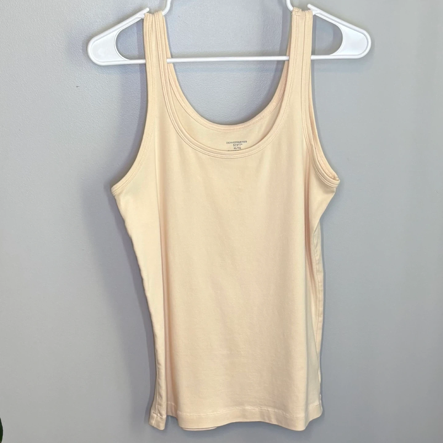 Denver Hayes, tank top, everyday, soft, ribbed, beige, nude, cream, XL, extra large, casual, basic, comfortable, stretch, women's, top, sleeveless.