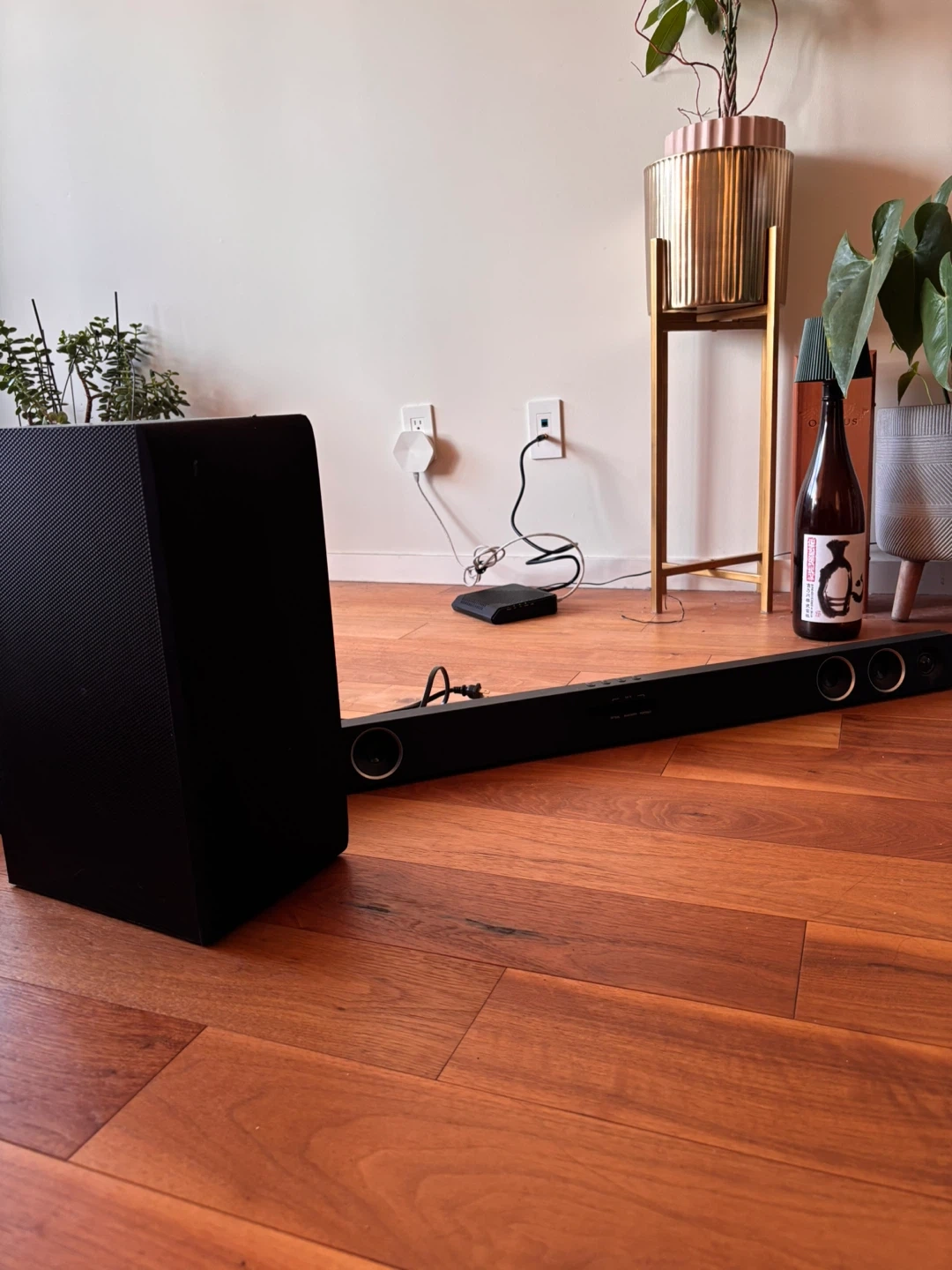 This is a LG black soundbar and subwoofer system. It's designed to enhance your audio experience. Both components are black. Want to upgrade so sell them here.