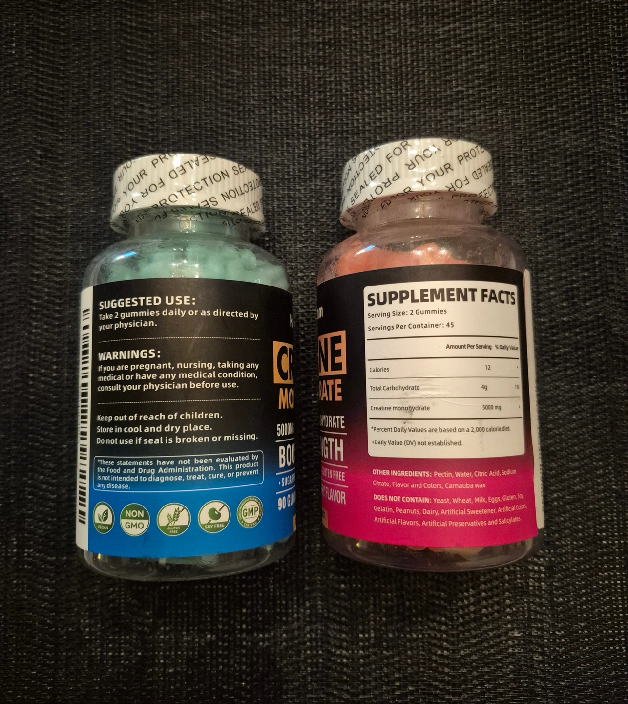 5,0000 mg of Creatine Monohydrate per each 2 gummy serving.