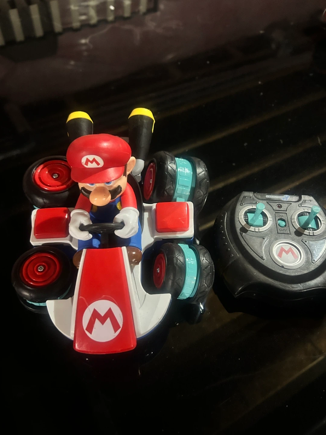 Selling a Mario Kart racer with remote control! It's in great shape and ready for some fun races. Perfect for kids and fans of the Mario Kart series