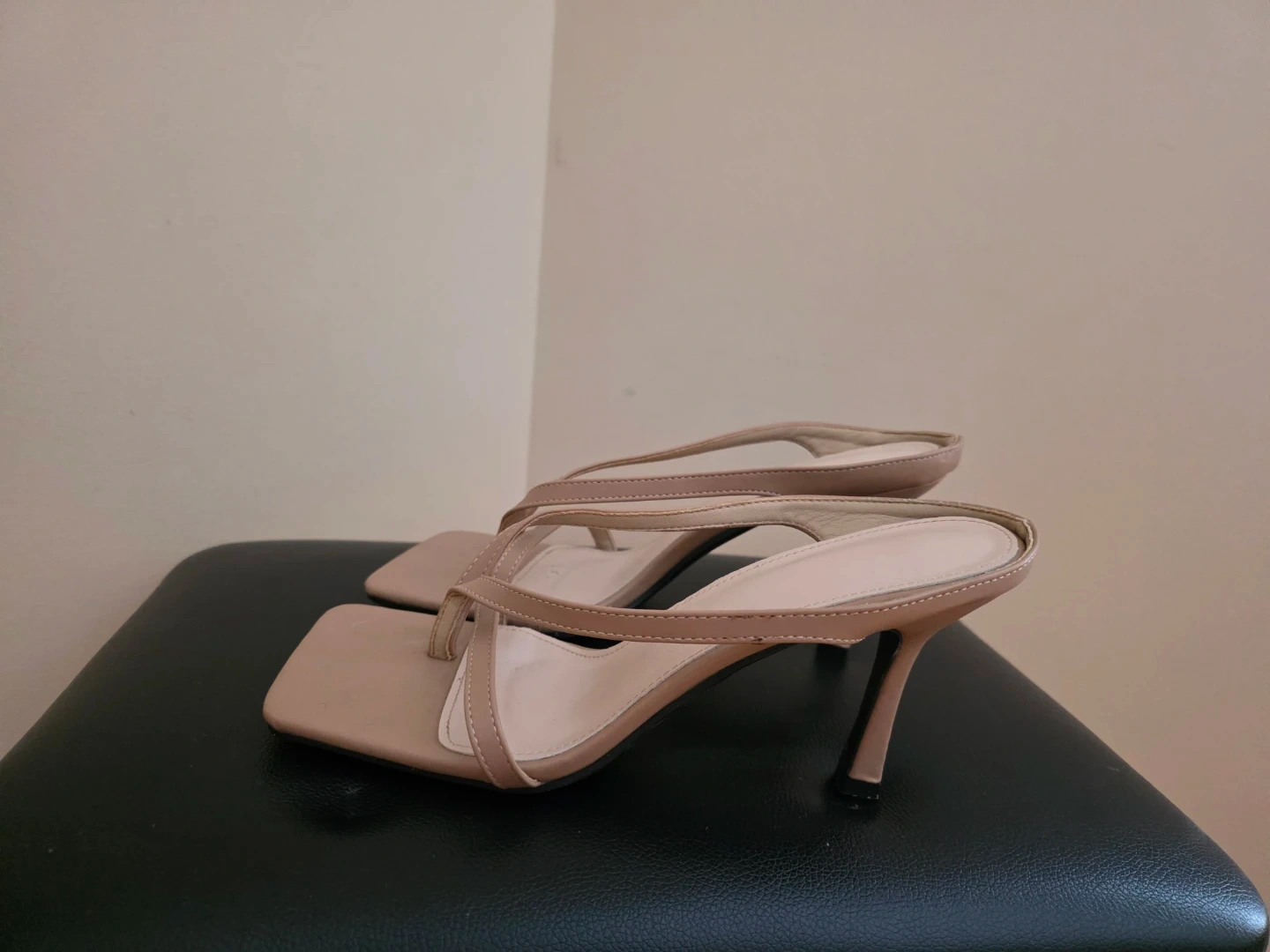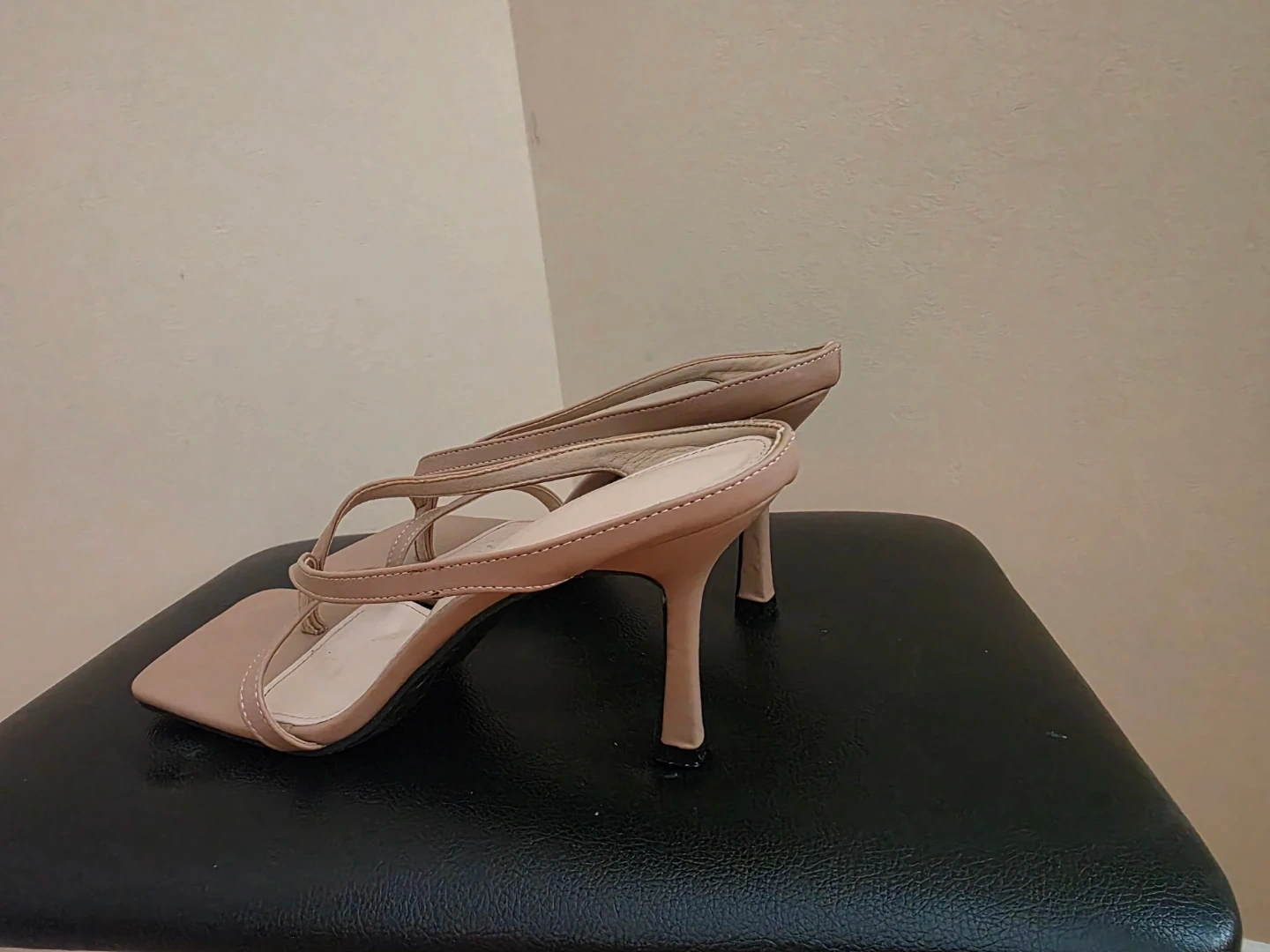 Stylish heeled sandals in a nude colour. These feature a square toe and strappy design. They're perfect for dressing up any outfit!