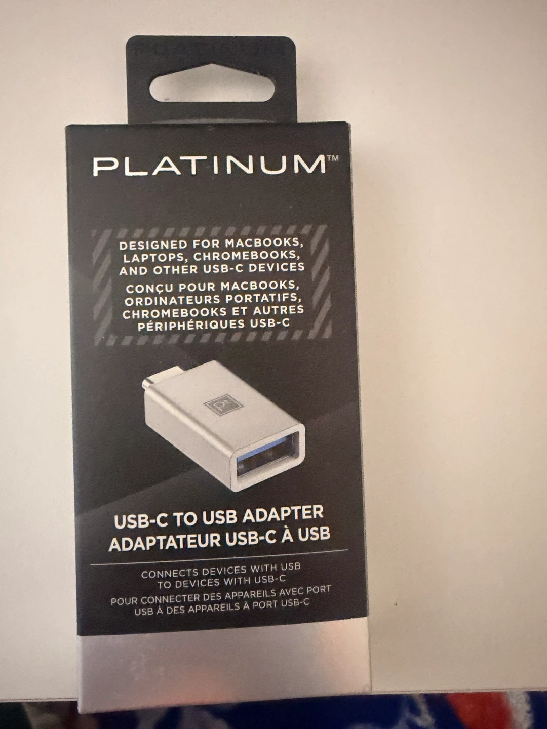 This Platinum USB-C to USB adapter connects devices with USB-C ports to accessories with USB-A ports. It supports USB 3.0 at 5 Gbps. It's designed for Macbooks, laptops, Chromebooks, and other USB-C devices.