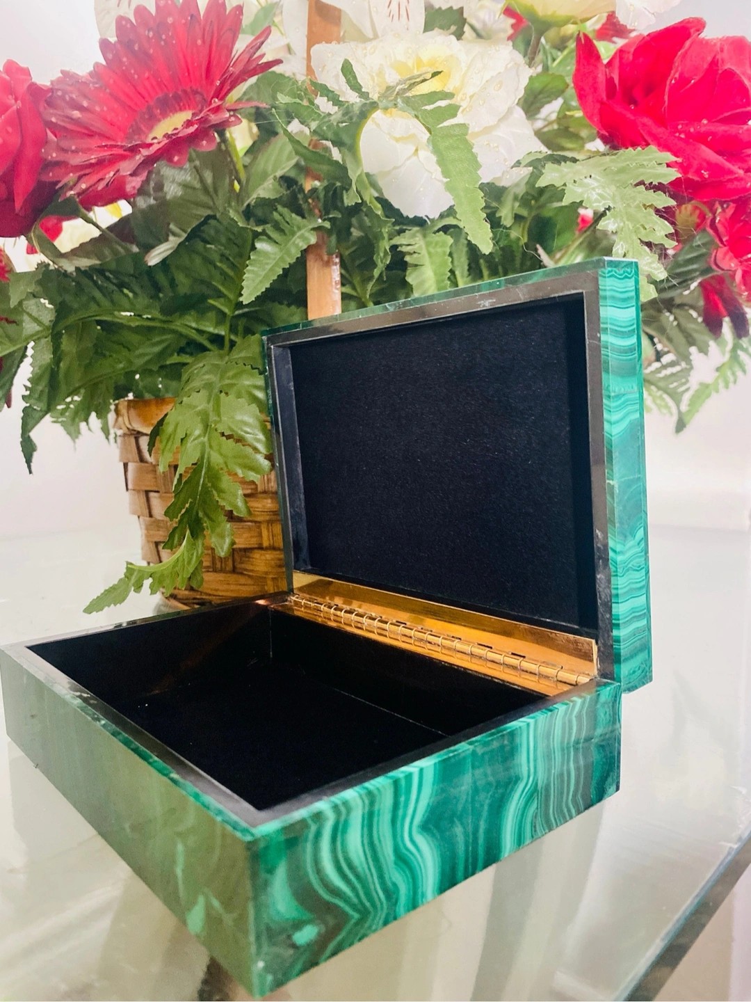 Malachite jewelry storage box (gemstone)