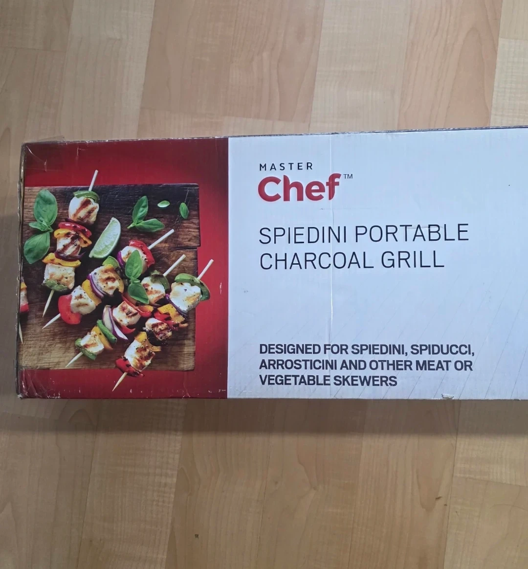 This Master Chef portable charcoal grill is designed for spiedini, spiducci, arrosticini, and other meat or vegetable skewers. It features foldable legs for easy storage and transportation. Perfect for outdoor gatherings and picnics!