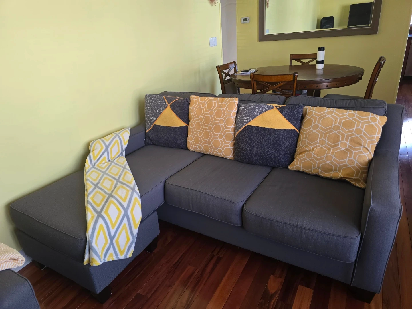 Grey Sectional Sofa with Yellow and Grey Accent Pillows