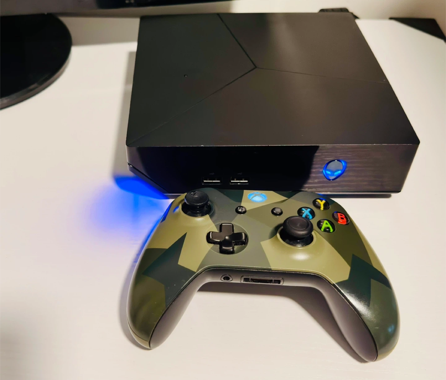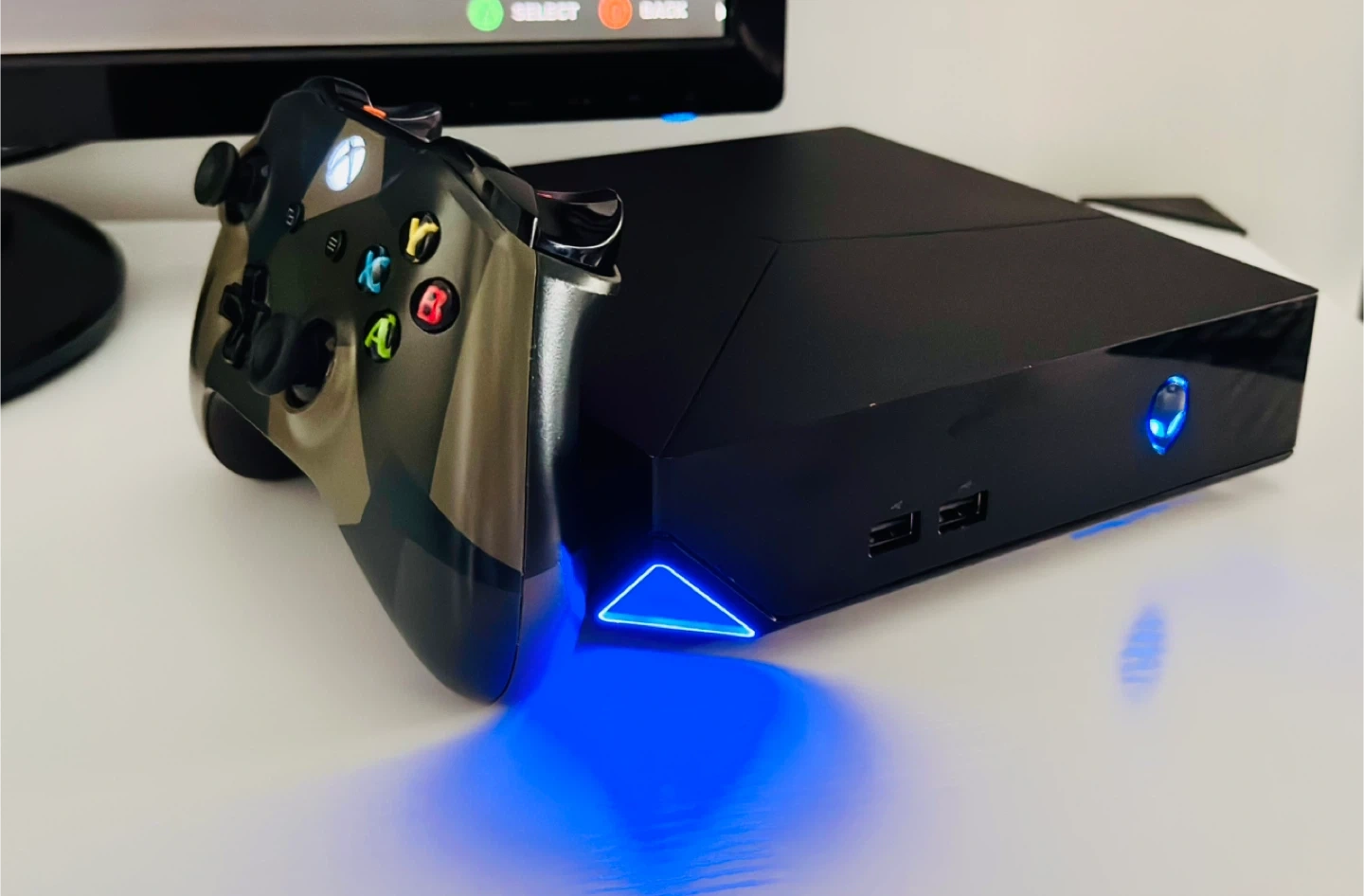 This is an Alienware Steam Machine console. It's a compact PC designed for gaming With a clean installation of Win 10. Tested in more than 5 Steam games. (Counter Strike 2, Brink, Dirt3, Combat Master, Etc.) Includes the original power adapter. (Xbox controller and screen not included)