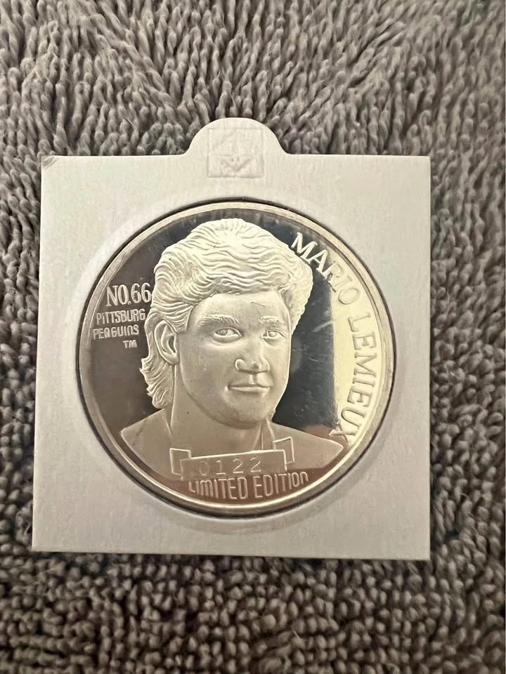 1oz .999 Fine Silver highly Collectable round featuring Mario Lemieux from 1991. An amazing piece to add to your collection. If it’s up, it’s available. Price is firm, no low balls please.