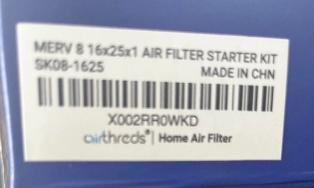 This is a new, unused Airthreads 16x25x1 MERV 8 air filter starter kit, still in its original packaging. It's a washable and reusable home air filter. MERV 8 filter, 16x25x1 size. Let me know if you're interested!