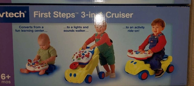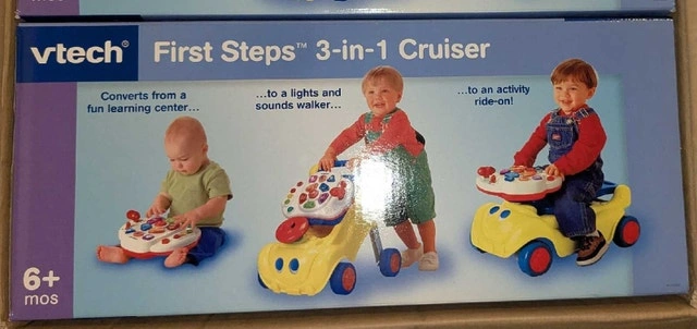 Brand new in box VTech First Steps 3-in-1 Cruiser. It transforms from a learning center to a walker, and then to an activity ride-on! Baby can learn letters, colors, and shapes with the removable activity panel.