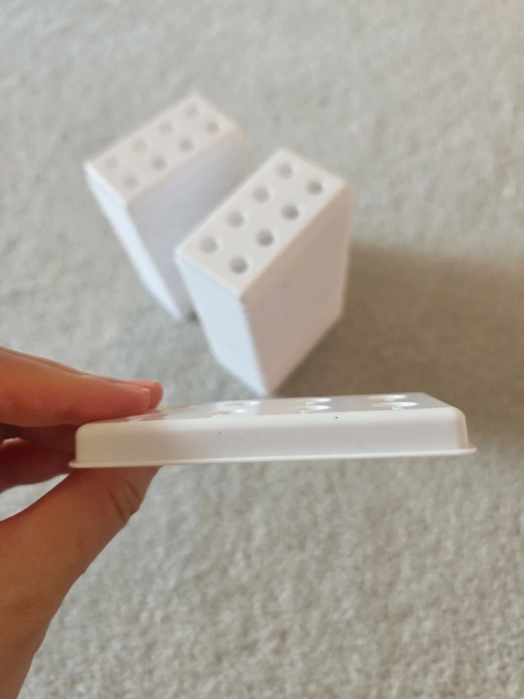 This white plastic organizer tray features 8 numbered compartments, perfect for small items. It's stackable and made of durable plastic. Useful for sorting craft supplies or small hardware.