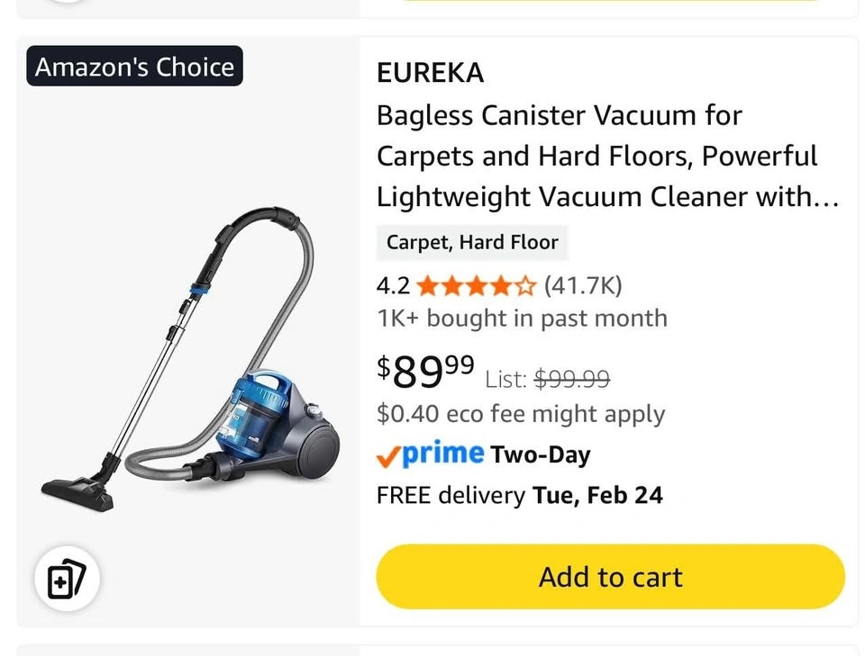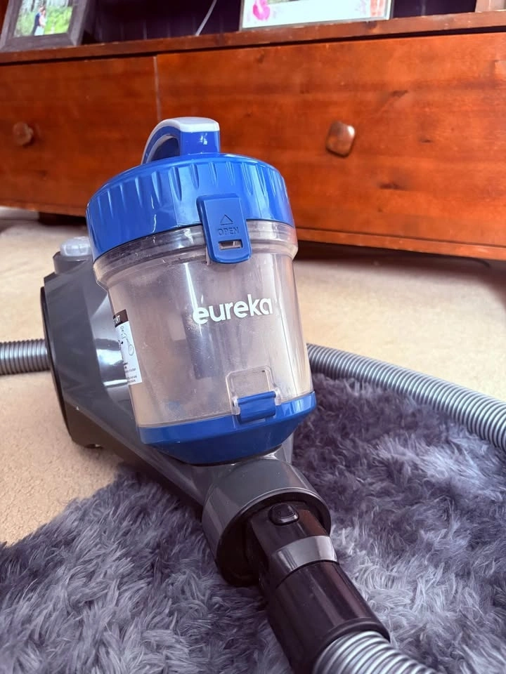Eureka bagless canister vacuum. Great for carpets and hard floors. Super lightweight and easy to move around. Works good. Got a way more expensive one for Christmas which is the reason for selling.