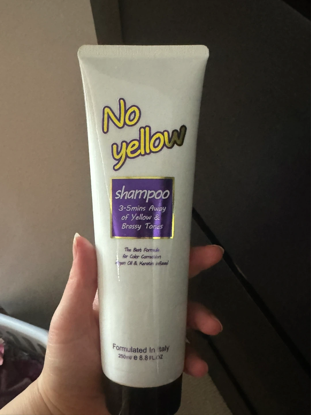 This No Yellow shampoo is formulated for color correction to help remove yellow and brassy tones. It's infused with Argan Oil and Keratin. 250ml bottle.