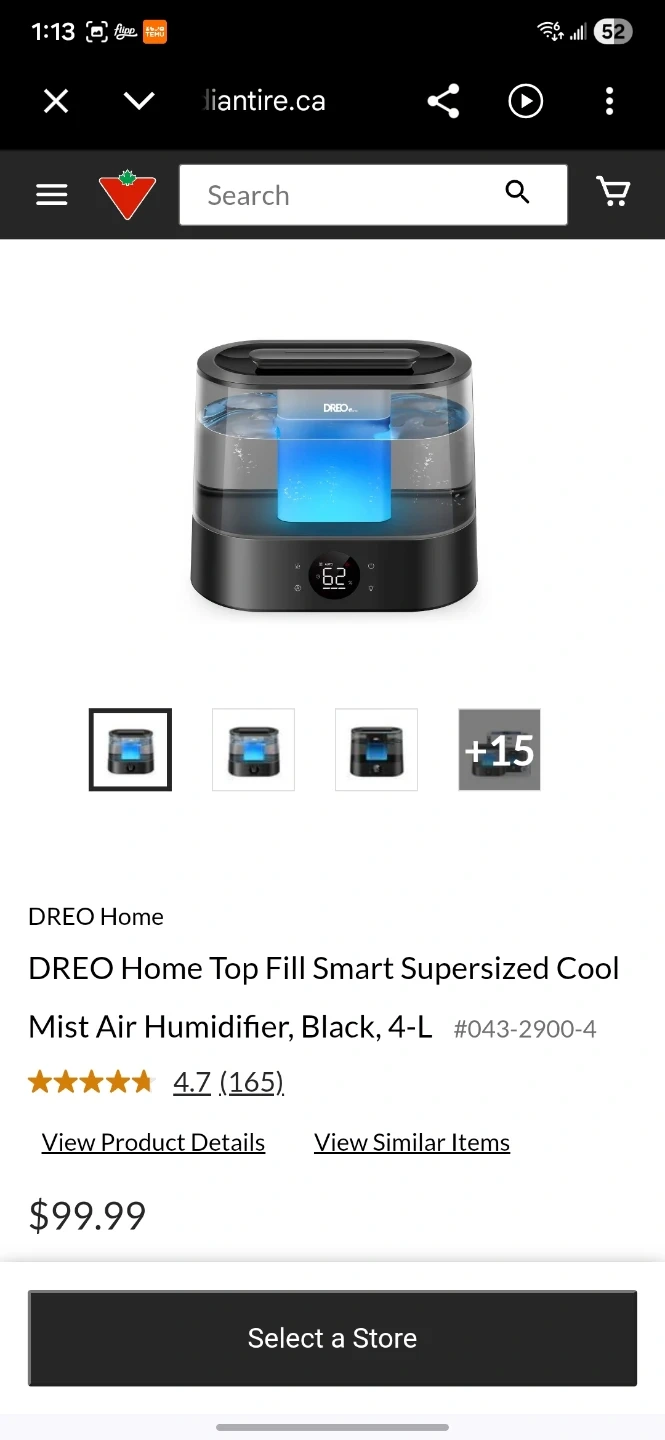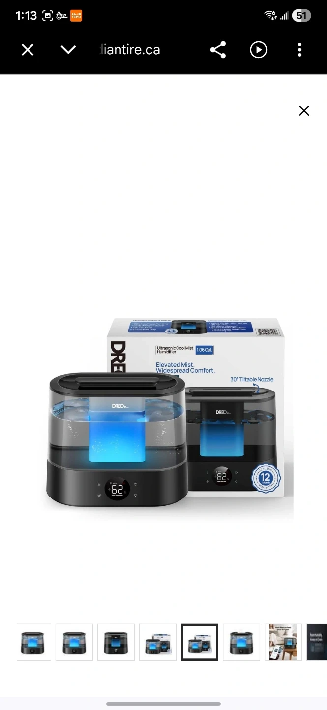 This Dreo Home humidifier offers elevated mist and widespread comfort. It's a 4-liter capacity unit with a 30" tiltable nozzle. It displays humidity levels and features auto mode.