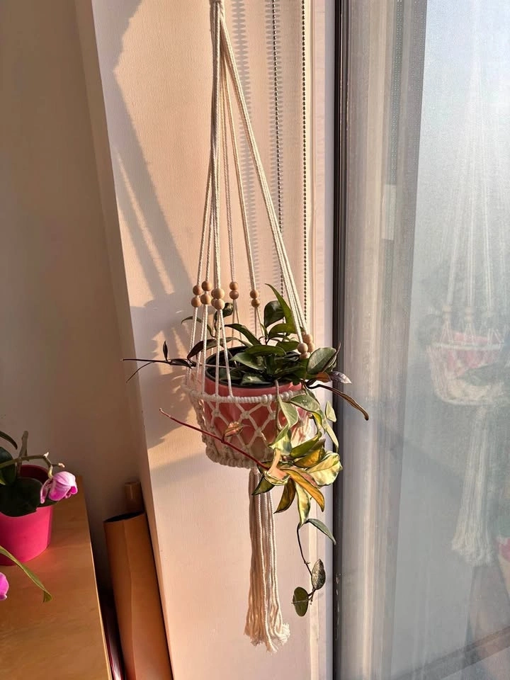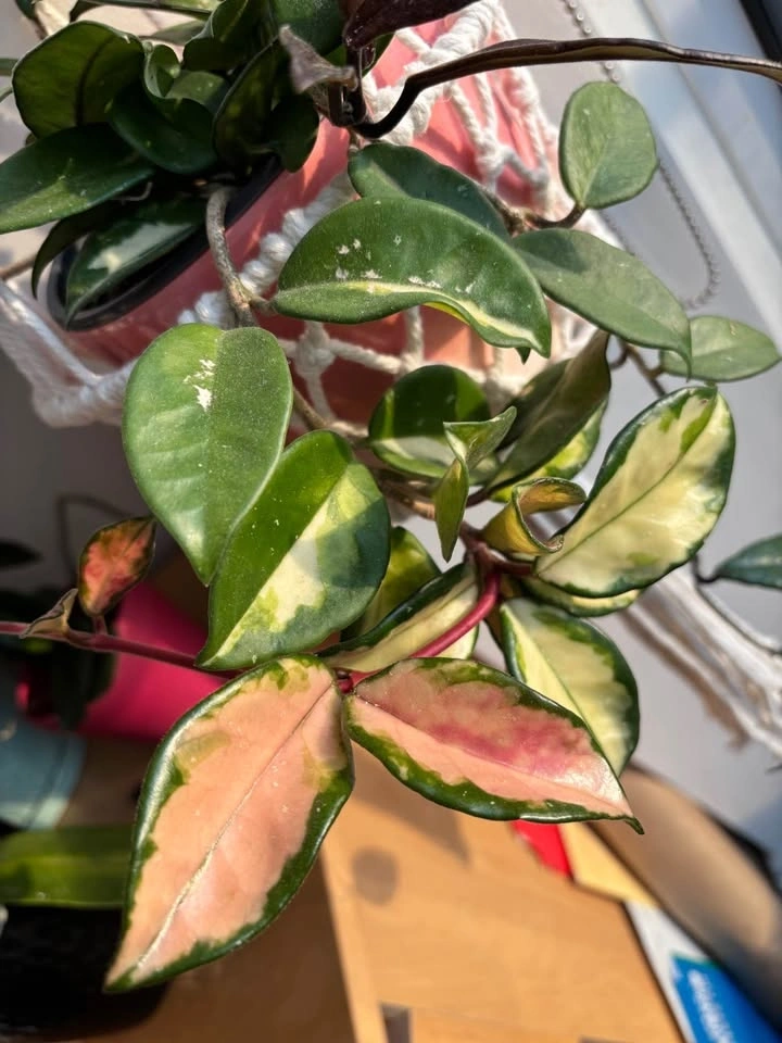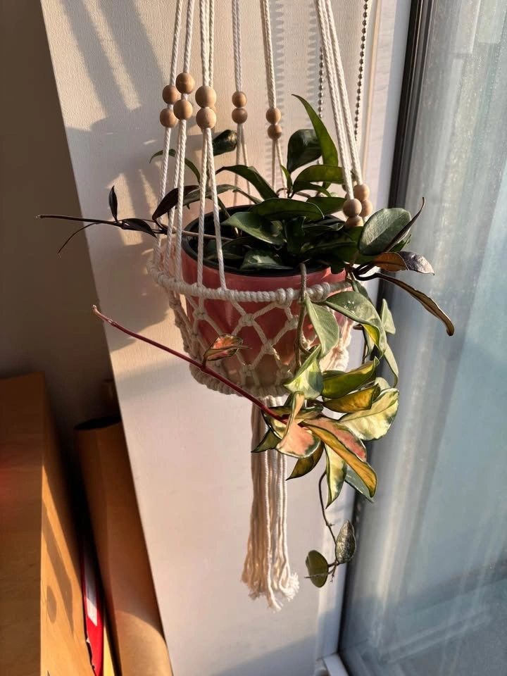 Beautiful variegated Hoya plant, likely Hoya carnosa ‘Tricolor’. It has pretty green, cream, and pink leaves. Comes in a pink gradient pot. The macrame hanger can be included for an extra $10. Plant is healthy and growing. Pick up near Eglinton station in midtown.