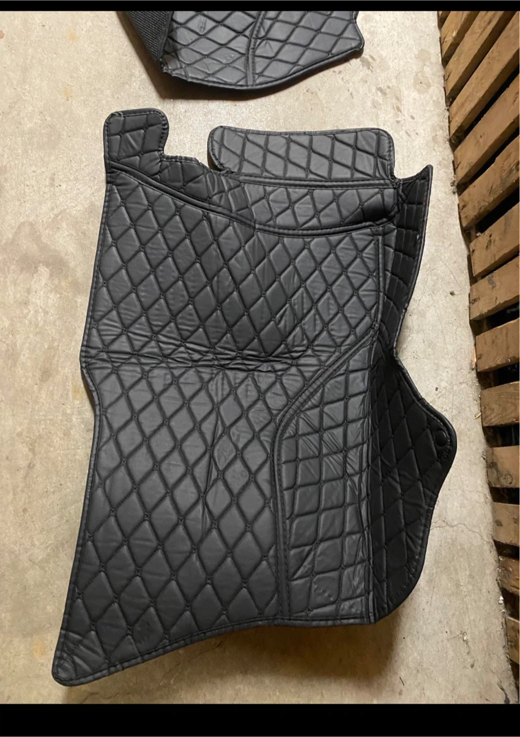 These are black quilted floor mats designed for car Dodge Ram 1500 classic. They're made from durable material and have a diamond stitch pattern. This set covers the floor area to protect your vehicle's interior. New, waterproof, never used.