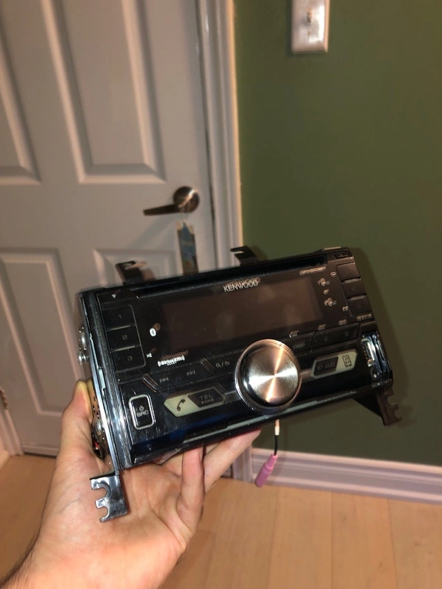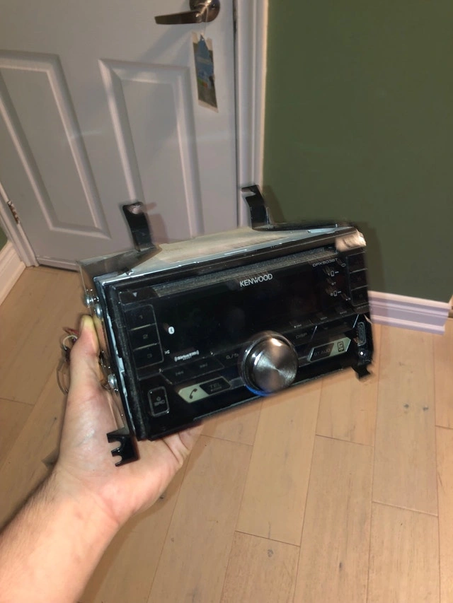 KENWOOD Double-DIN In-Dash AM/FM CD Receiver with Bluetooth and SiriusXM Ready. Features a large 3-line text display with variable illumination. Includes front USB and aux inputs. Compatible with Spotify, Pandora, and iHeart Internet Radio Link for iPhone or Android. You can add satellite radio. Used - Like new.