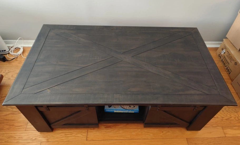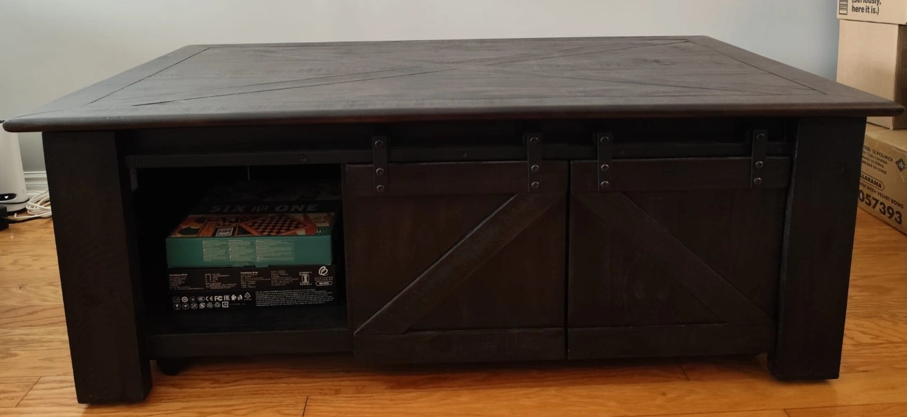 Farmhouse Coffee Table with Sliding Barn Doors + Lift-Top Storag