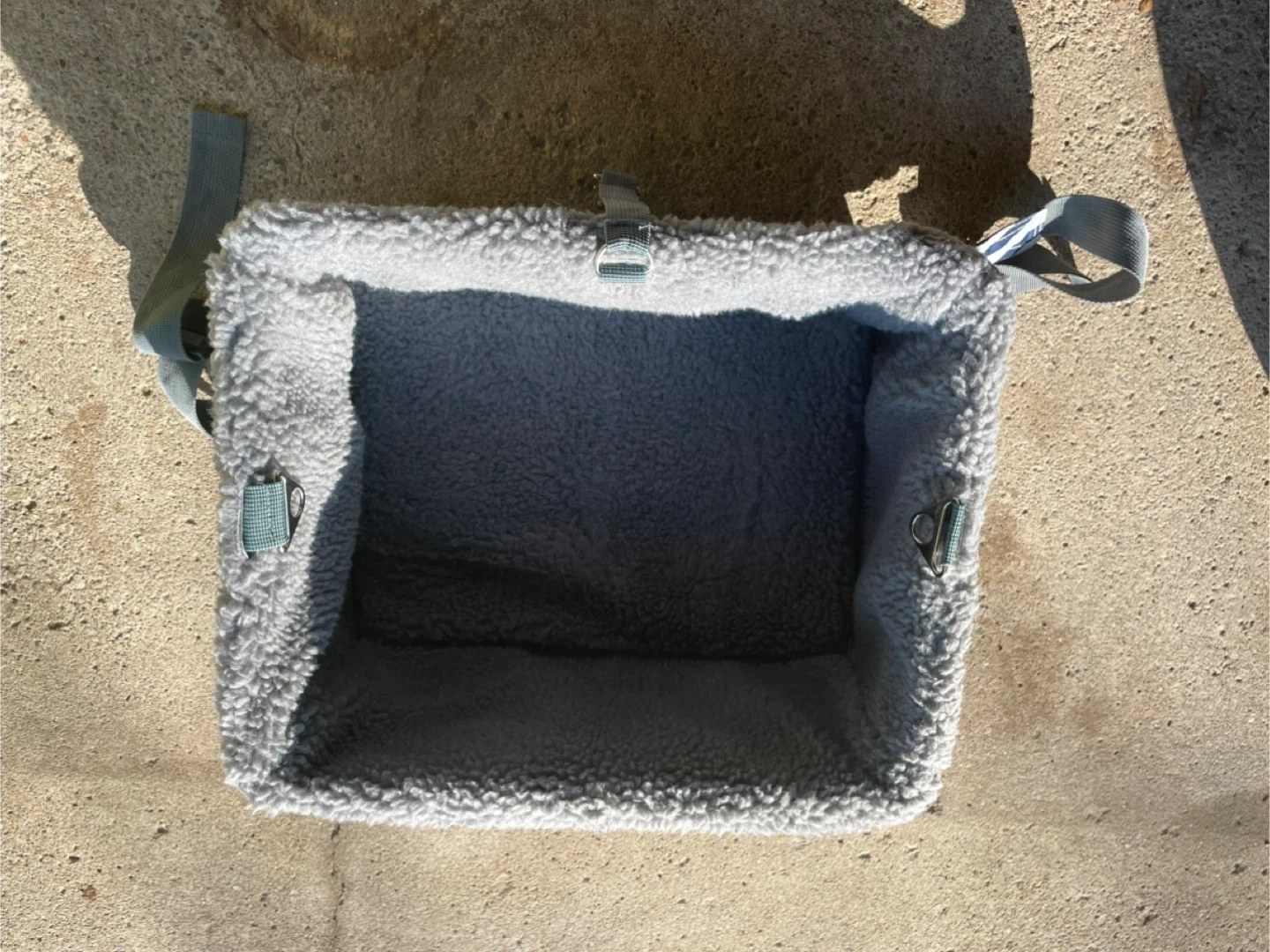 Keep your furry friend safe and comfy on car rides! This plush booster seat is lined with soft grey fleece and features a secure harness clip. The outer shell has a cute blue and white striped pattern.
