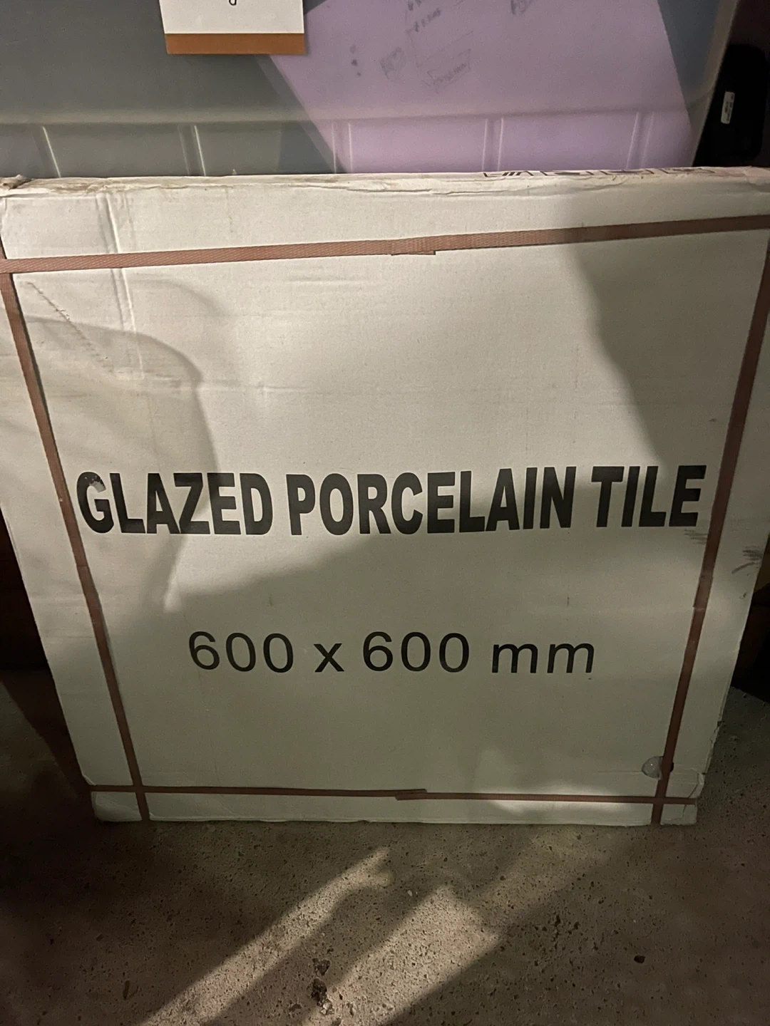I am selling new glazed porcelain tile, each piece measuring 600 x 600 mm. This tile is brand new, never installed, and ready to elevate your space with its sleek and modern appearance. 7 pieces of tile.
