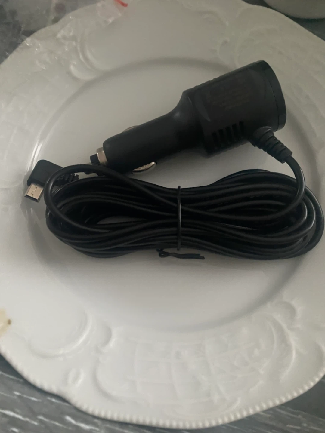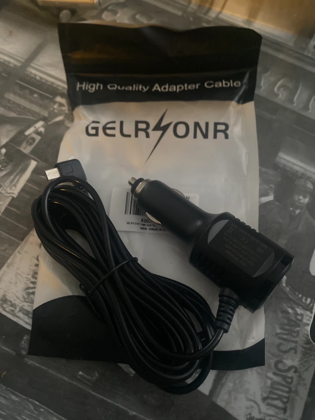 This is a GELRHONR high-quality adapter cable for dash cams. It features a Mini USB connector and is 11.5 feet long. The input is DC12-36V and the output is 5.0V/2.5A or 5.0V/3.1A. It's useful for powering dash cameras in vehicles. Also Compatible with older cameras, and Garmin Nuvi GPS. On and off button and one USB plug in.