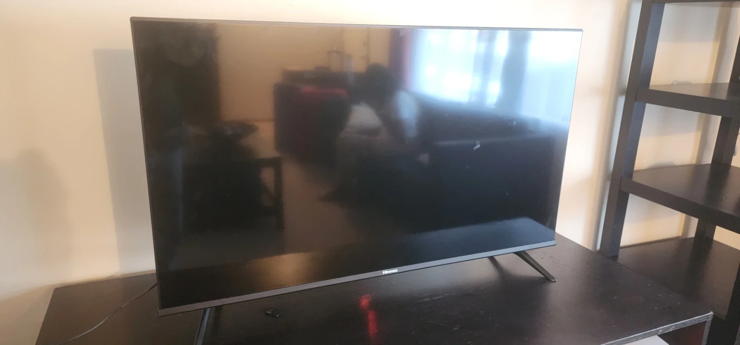 A 42" Hisense television for your entertainment needs. It has a sleek black design and is ready to stream your favourite shows. This TV is perfect for any living room! Comes with remote.