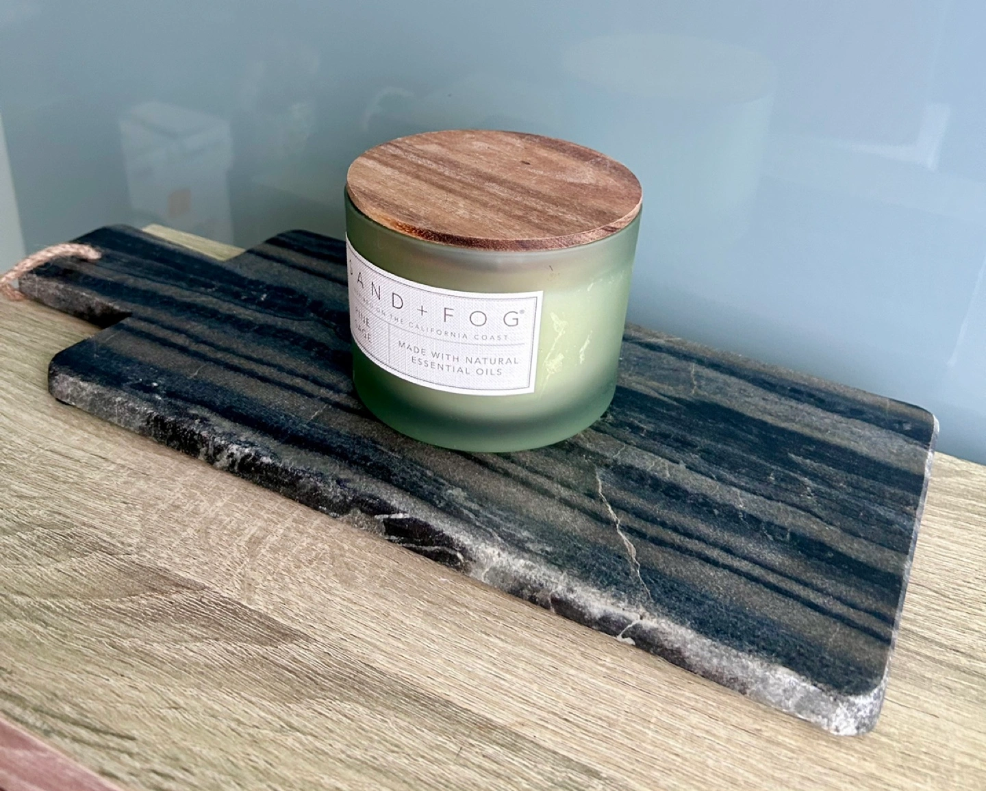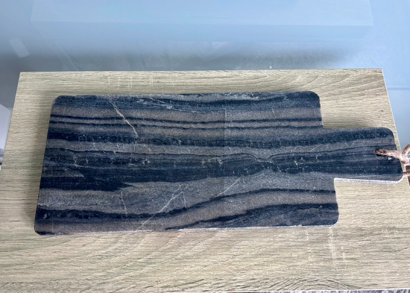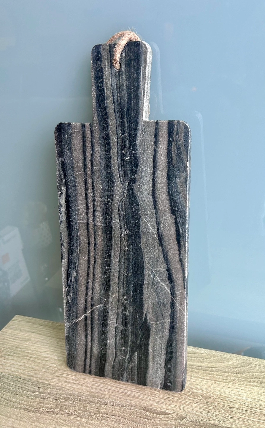This moody marble board is perfect for serving food, a cheese platter, candle holder, and many more uses!