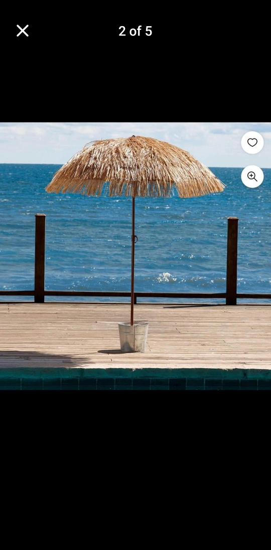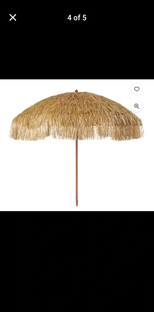 Brown thatch umbrella. Features a brown wooden-look pole and a plastic ground spike. Perfect for your patio or garden.