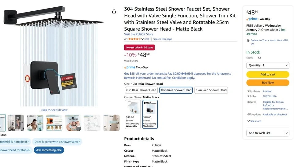304 Stainless Steel Shower Faucet Set, Shower Head with Valve Single Function, Shower Trim Kit with Stainless Steel Valve and Rotatable 25cm Square Shower Head - Matte Black. Feel free to message if you have any questions!