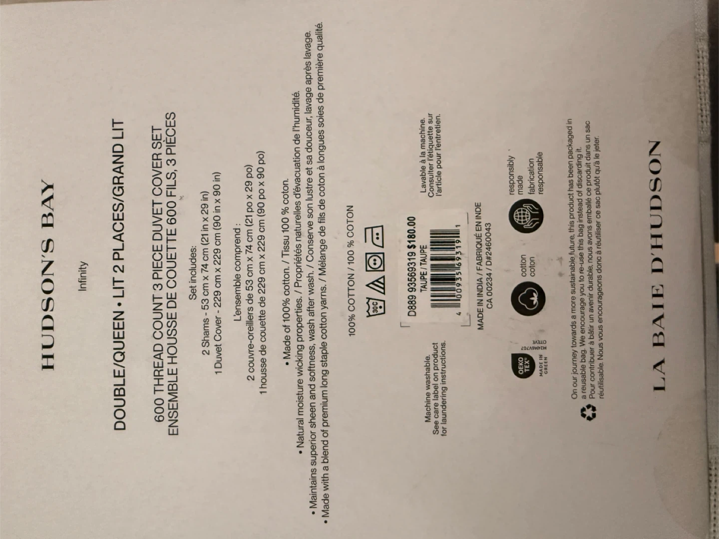 Hudson's Bay Double/Queen 3 Piece Duvet Cover Set