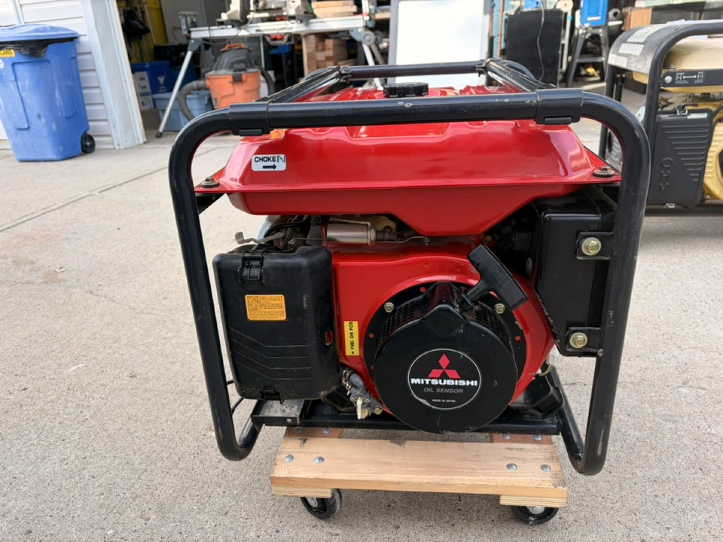 Mitsubishi MGE 4000 generator. Electric and pull start, AC 120/240 volt, 60 HZ, 3300VA. DC 12V, 100W. Works great. No battery. In excellent condition. Very clean. Comes with a 4-wheel rolling dolly as shown. Can deliver to Edmonton for $50.