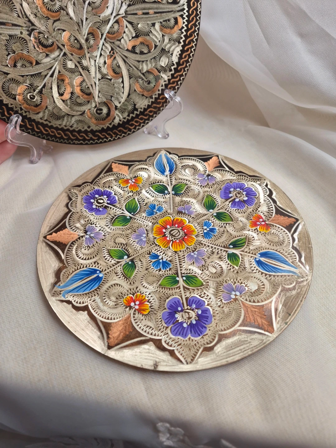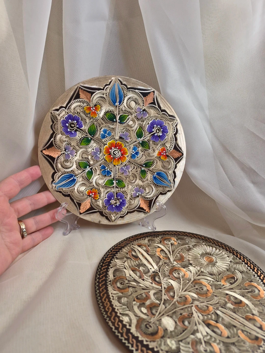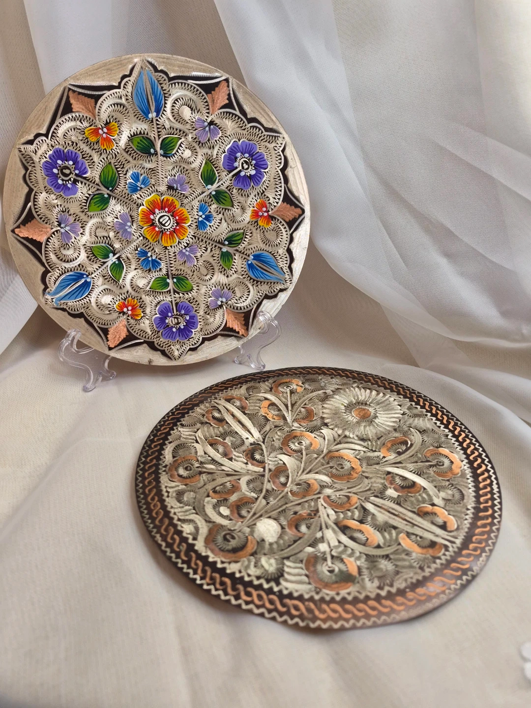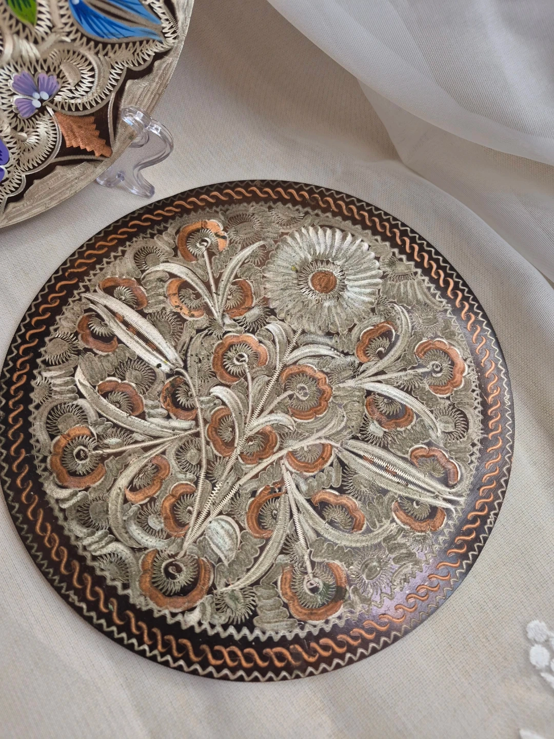 Pair of Beautiful Vintage 7 1/2" Etched Copper Wall Plates Decor Excellent Vintage Condition please see all pictures selling both together