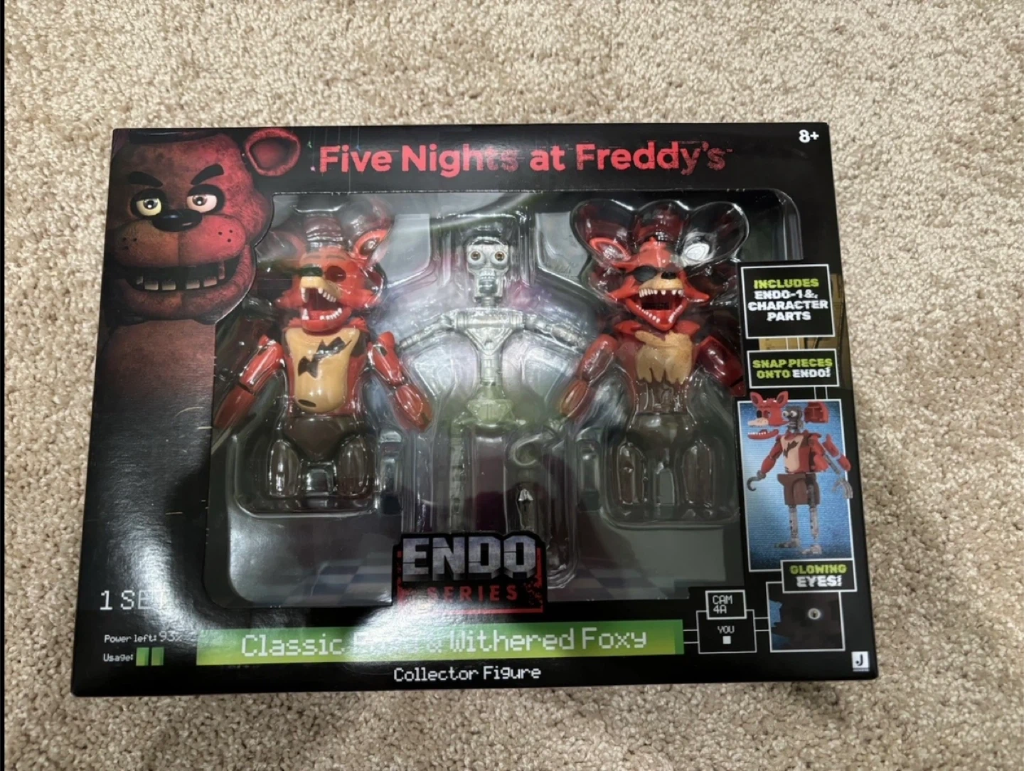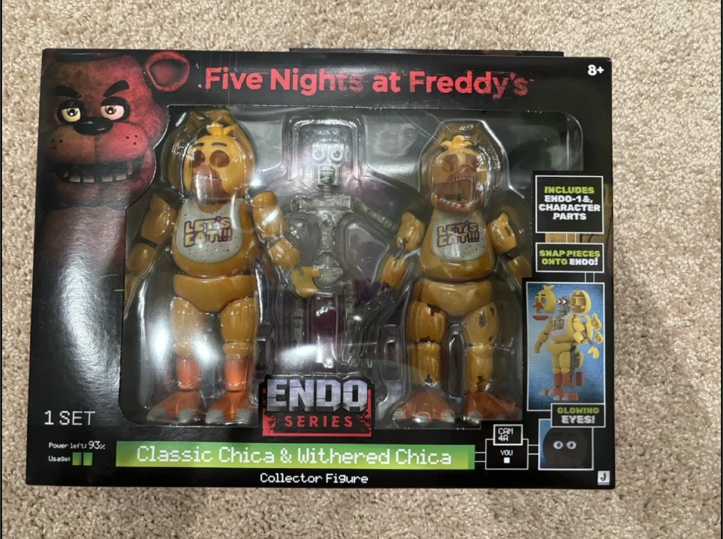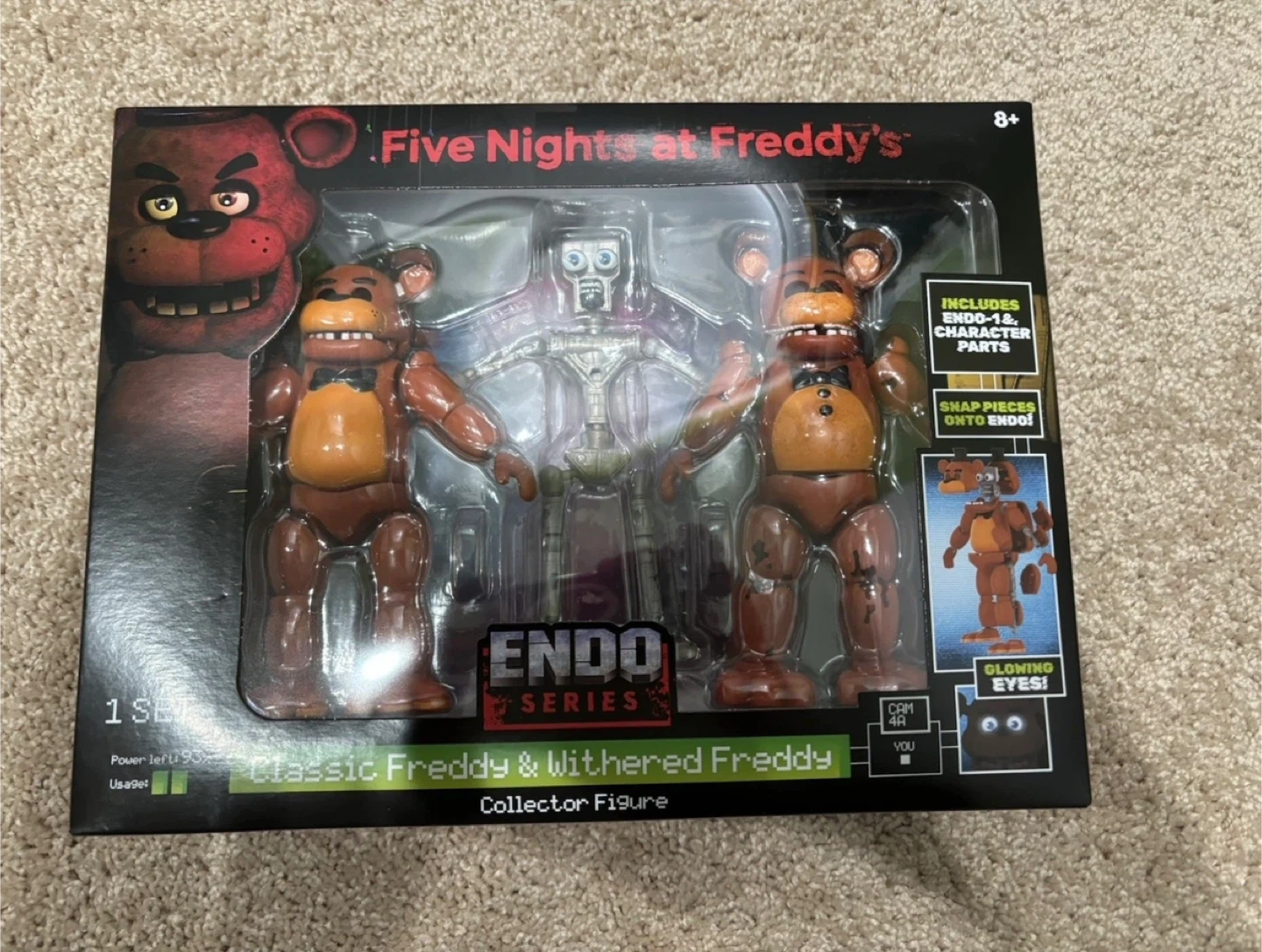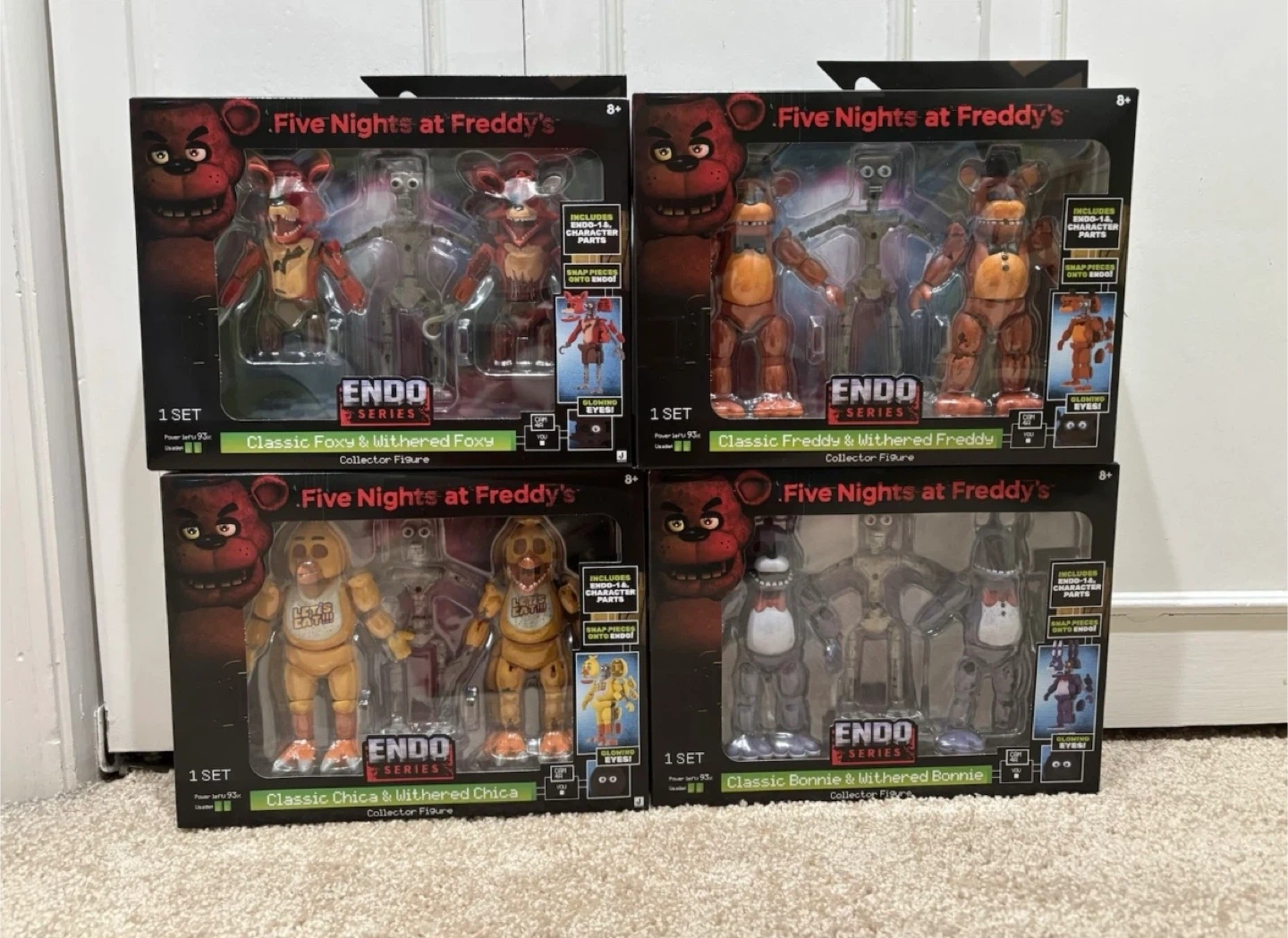 This set includes Classic and Withered figures from Five Nights at Freddy's. It comes with Endo-1 and character parts. Snap pieces onto Endo for customizable figures!
